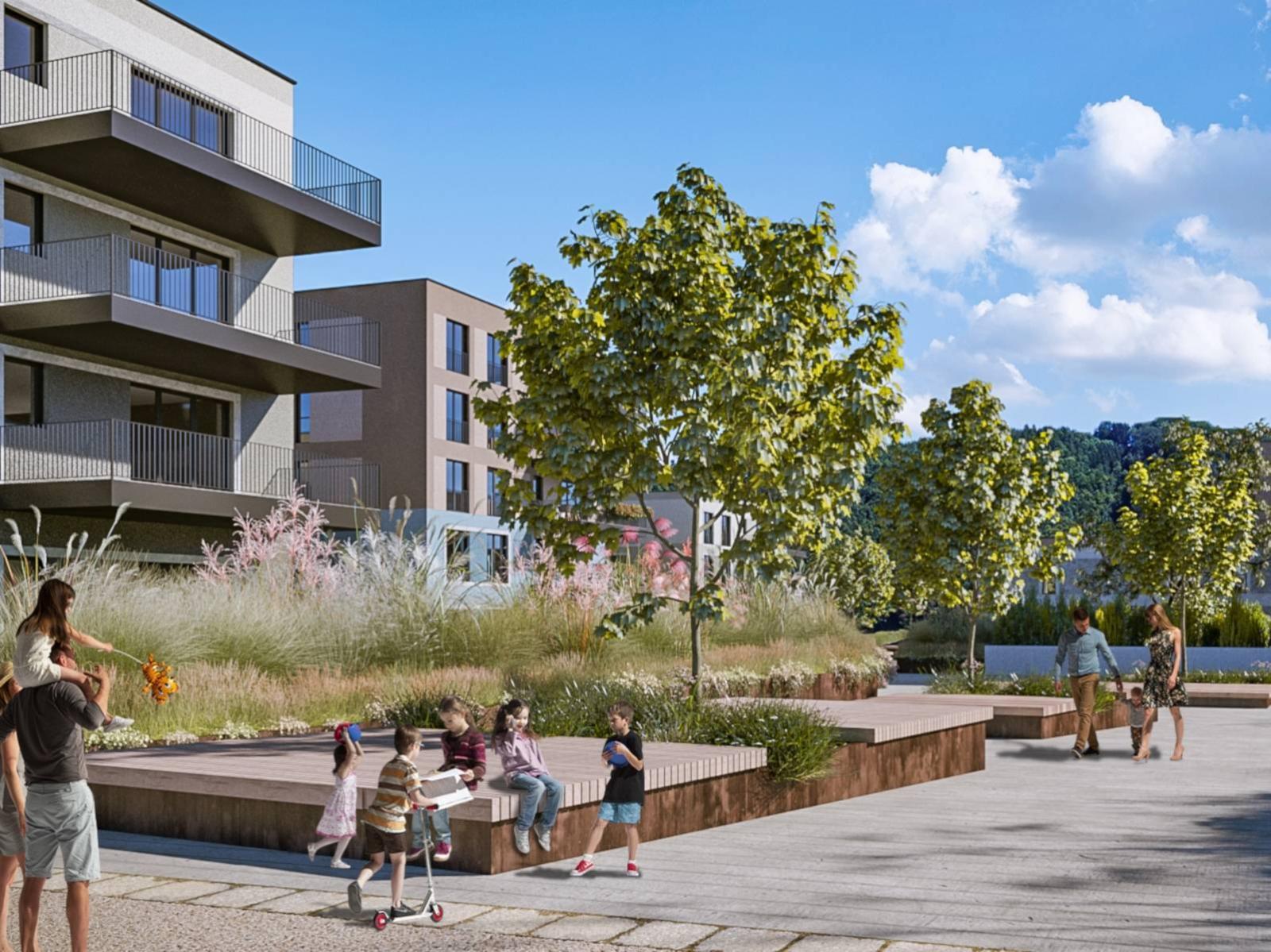 Your advantages: - Modern and high-quality interior fittings, finishes to suit the tenant - Private gardens, terraces or large balconies - Succession of grassy and tree-filled terraced areas - Wooden playground - Site fully accessible by paths and ramps - Visitor parking on the surface - Underground parking for cars, motorbikes and bicycles