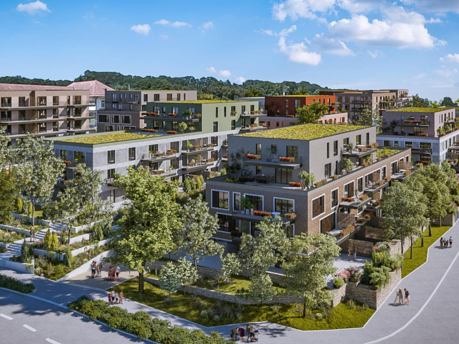 Your advantages: - Modern and high-quality interior fittings, finishes to suit the tenant - Private gardens, terraces or large balconies - Succession of grassy and tree-filled terraced areas - Wooden playground - Site fully accessible by paths and ramps - Visitor parking on the surface - Underground parking for cars, motorbikes and bicycles