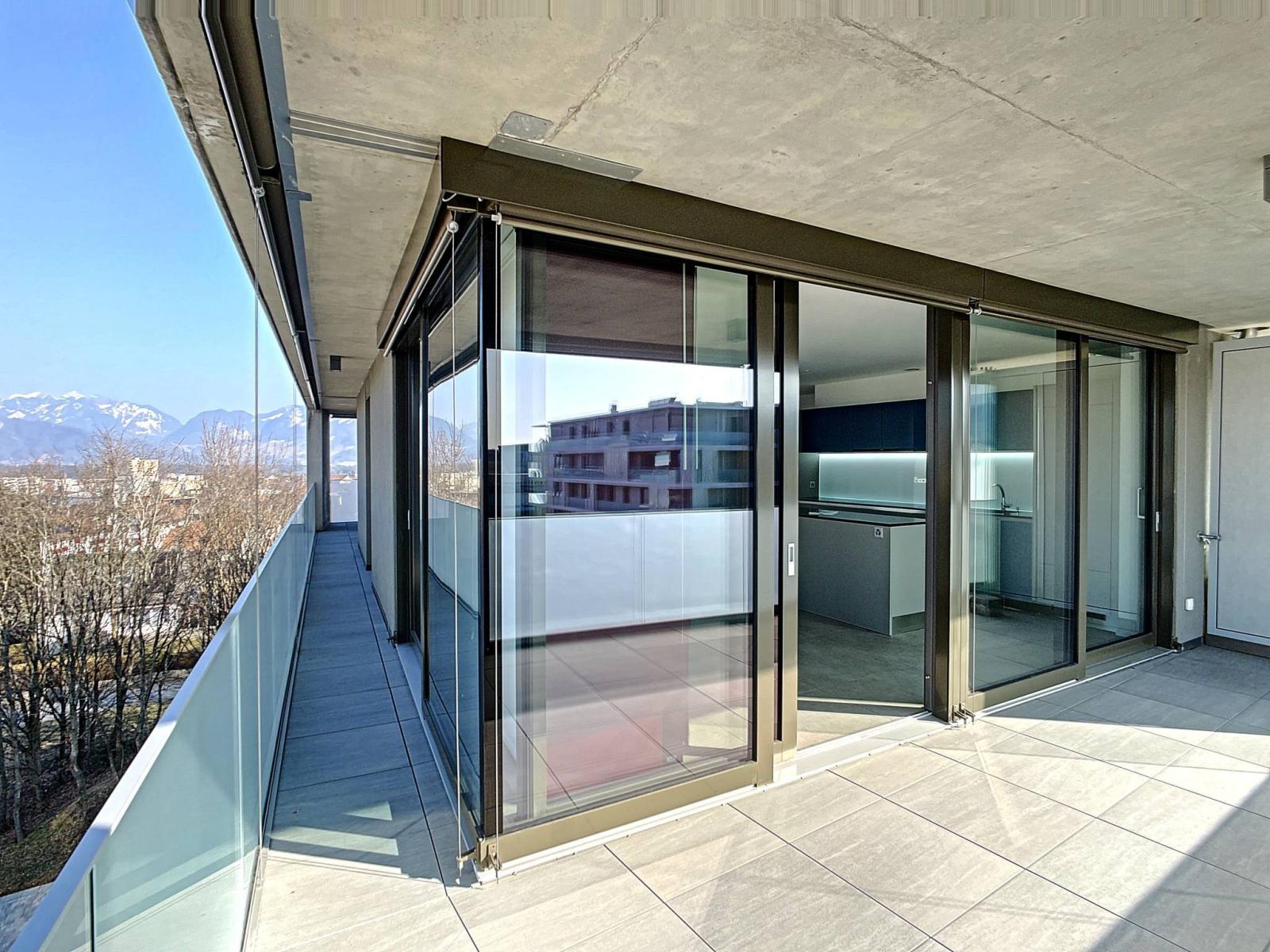 In a quiet area, discover this beautiful 4.5 room apartment "like new and little lived in", with a living area of 107 m² completed by a balcony of 35 m², thus bringing the weighted surface area to 124 m².