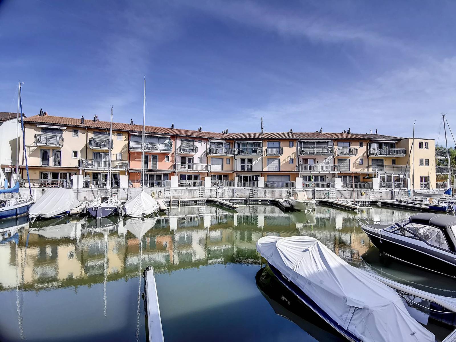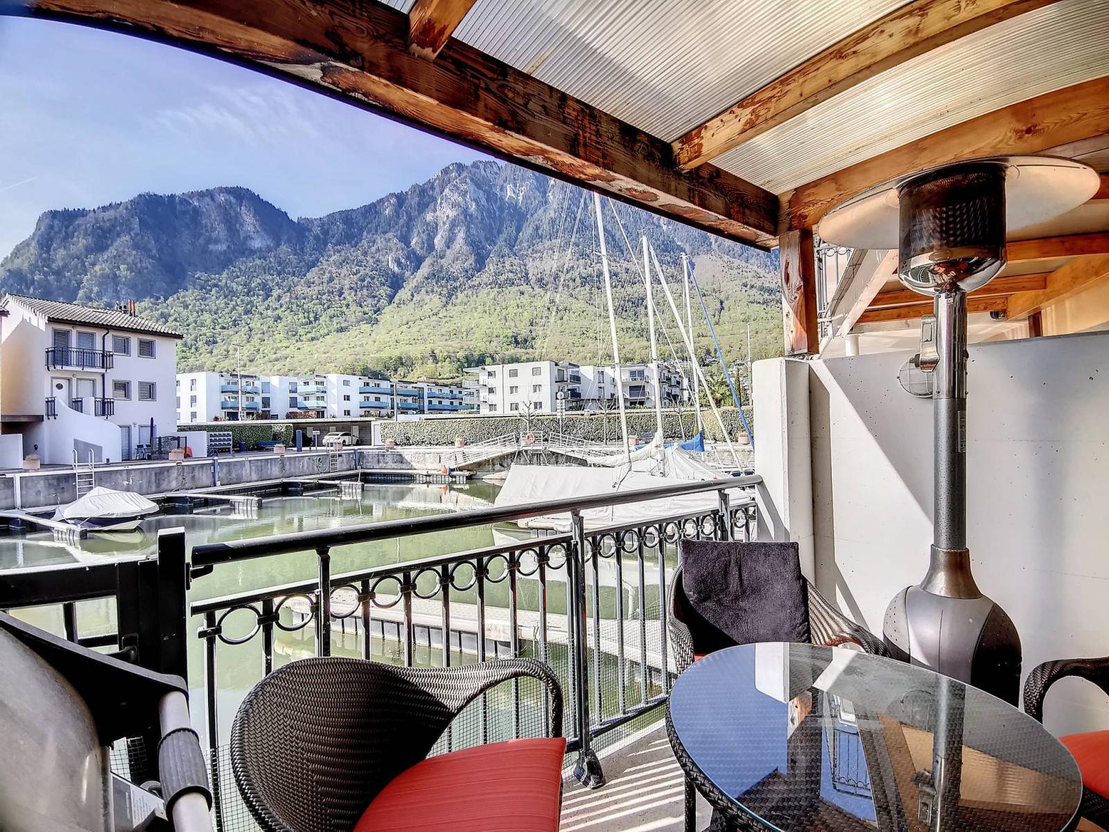 This 4.5 room duplex apartment is located on the ground floor and 1st floor of the renowned Marina du Bouveret/Port-Valais. It has approximately 152 m² of sales area. (gross floor area 140 m², garden/terrace 9.85 m², according to official document), with a terrace and a balcony upstairs. Its location is ideal, at the water's edge, in a bucolic place.