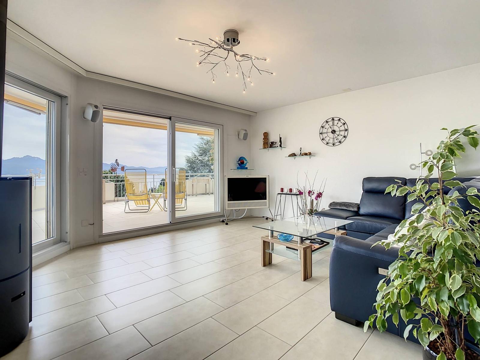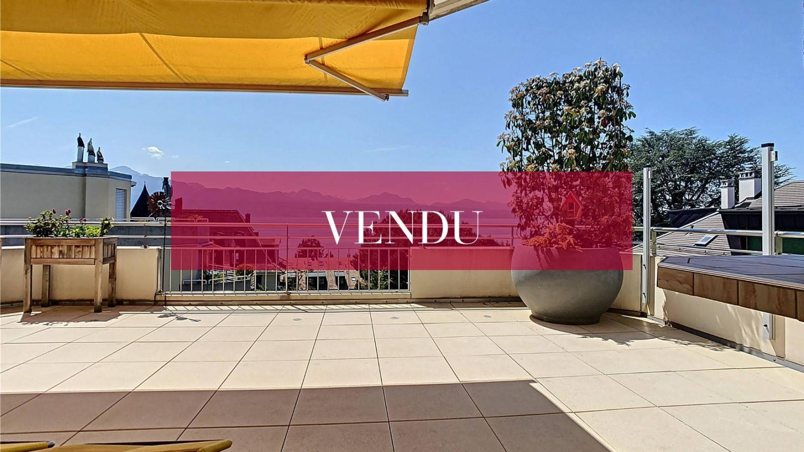 Occupying the entire top floor of a small PPE with a residential vocation of 4 apartments, this penthouse benefits from a panoramic terrace of approximately 115 m2 with a plunging view of the lake and the Alps.