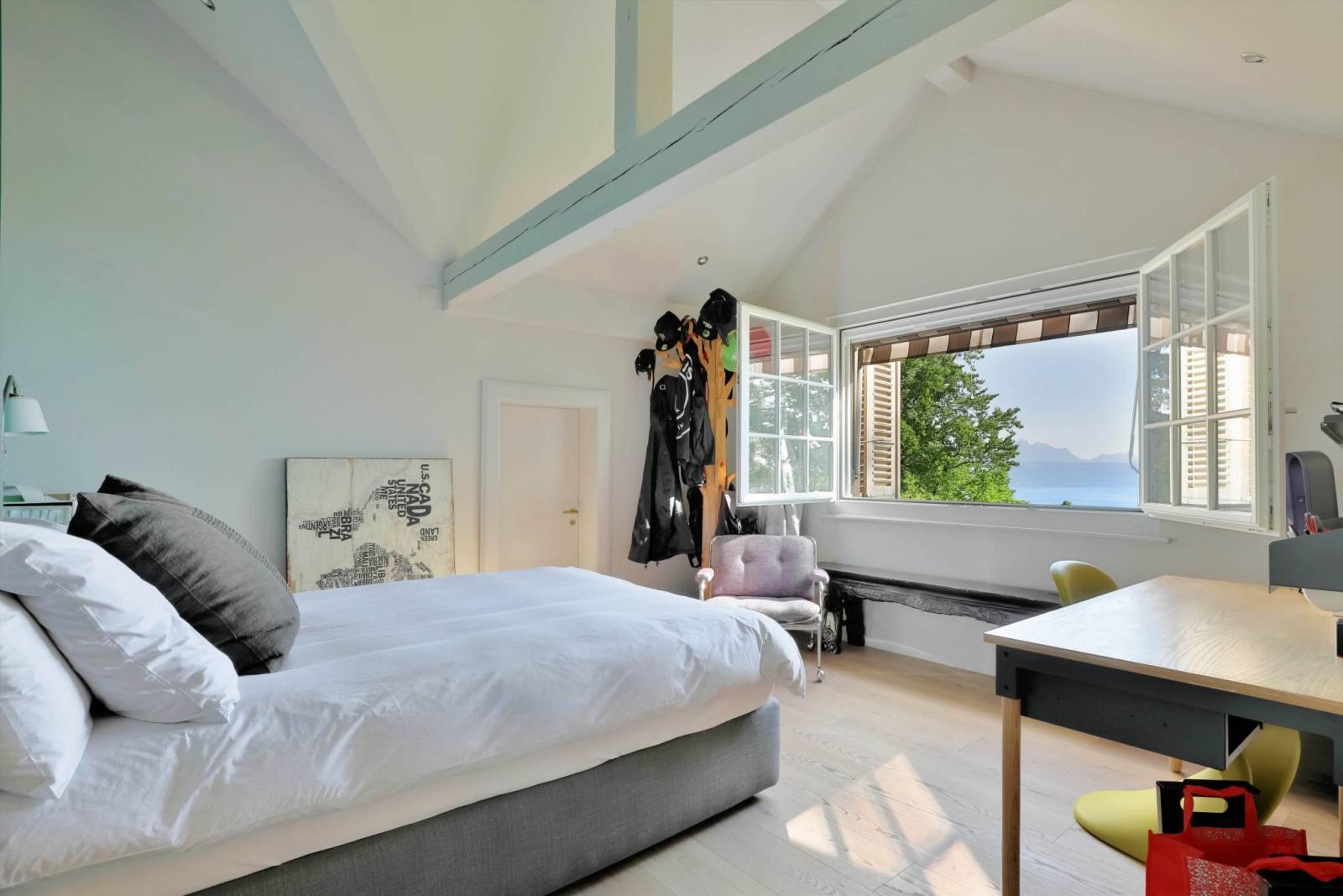 Located in the heart of the Lavaux vineyards, and just a few minutes from the Bourg de Lutry, this architect-designed property enjoys a highly sought-after residential environment, quiet and not overlooked. On the hillside, the plot is in a dominant position and offers a panoramic view of the lake and the Alps.