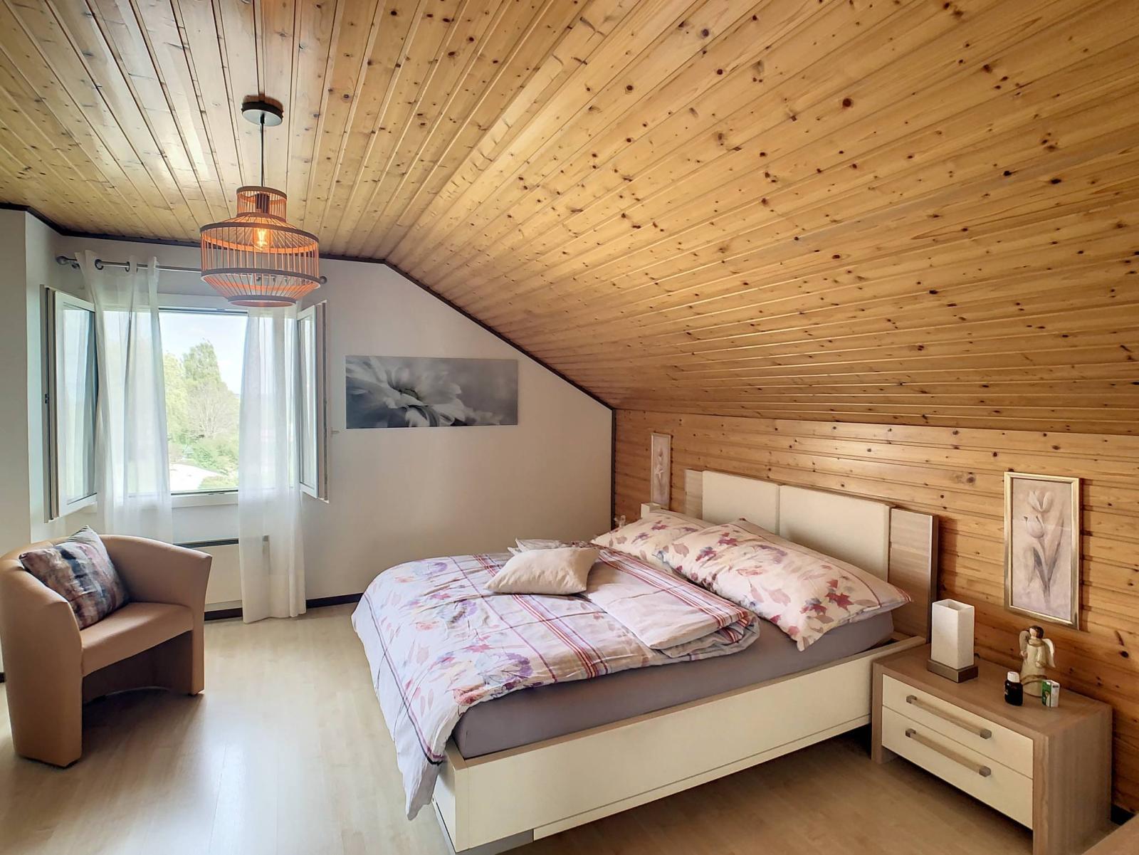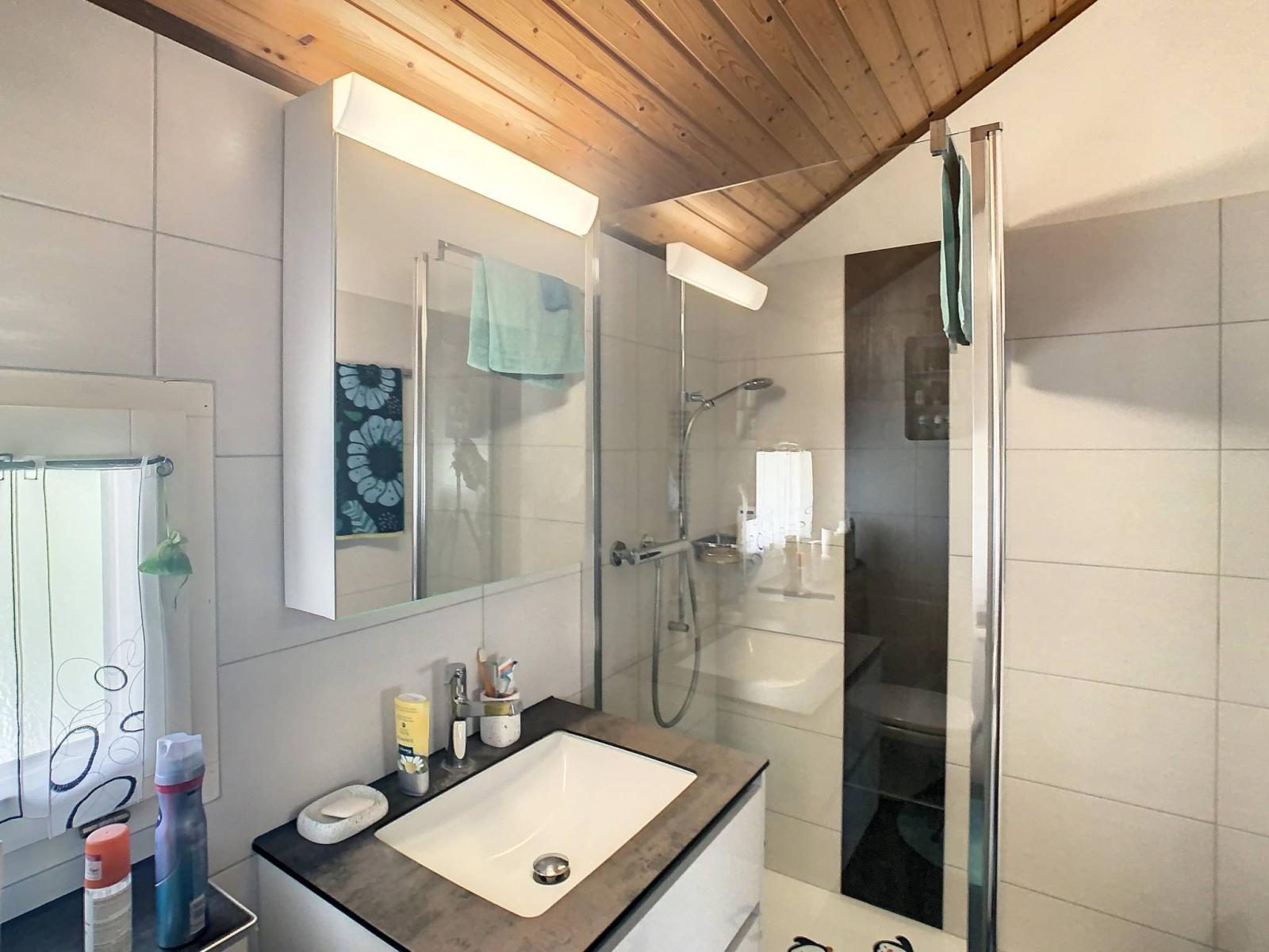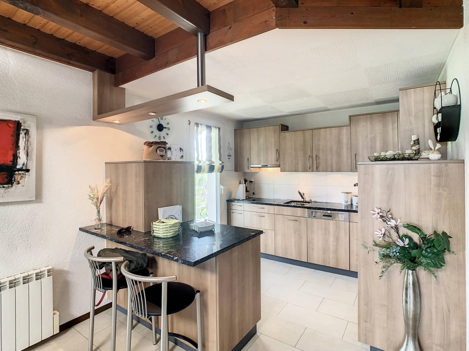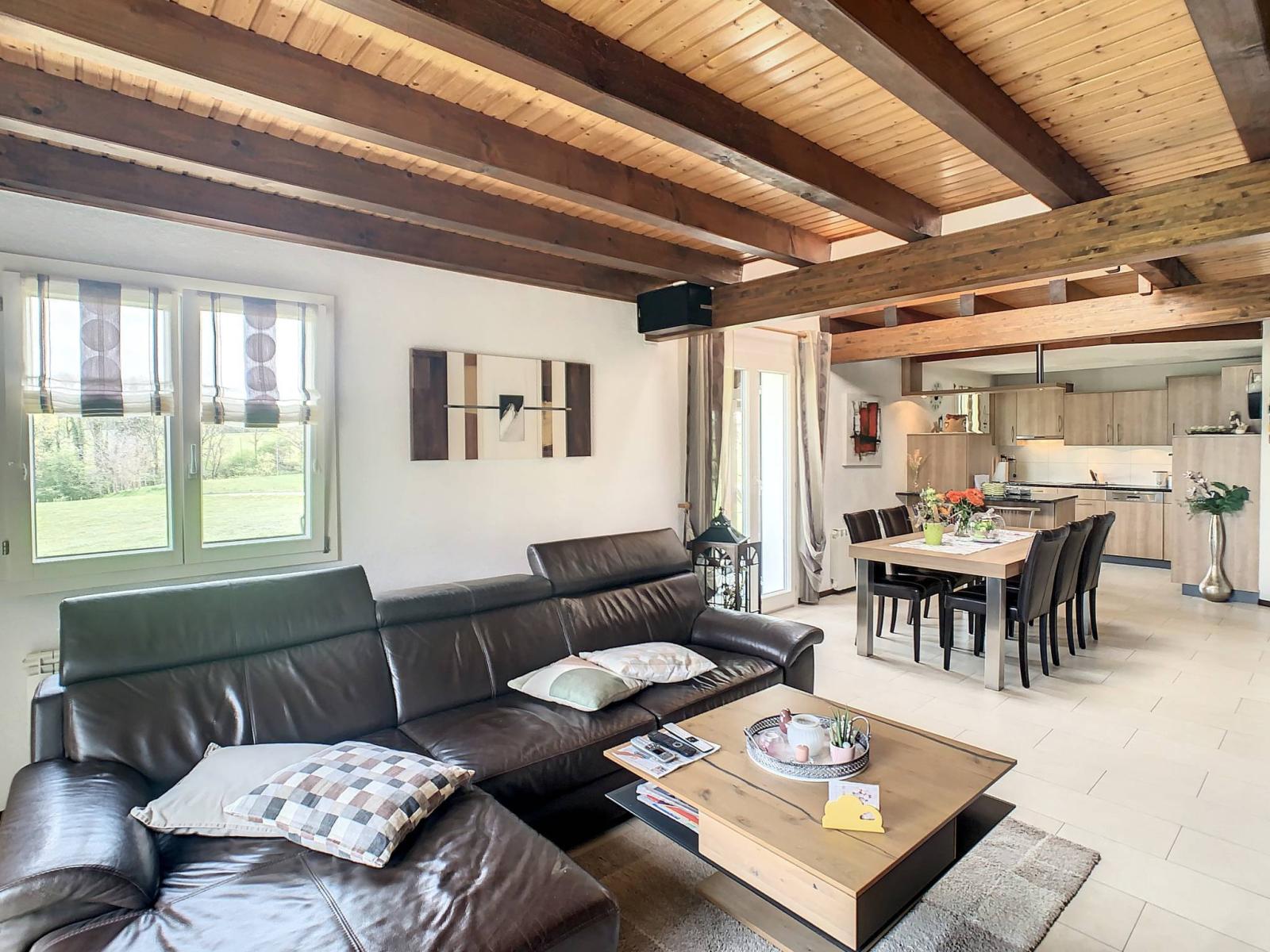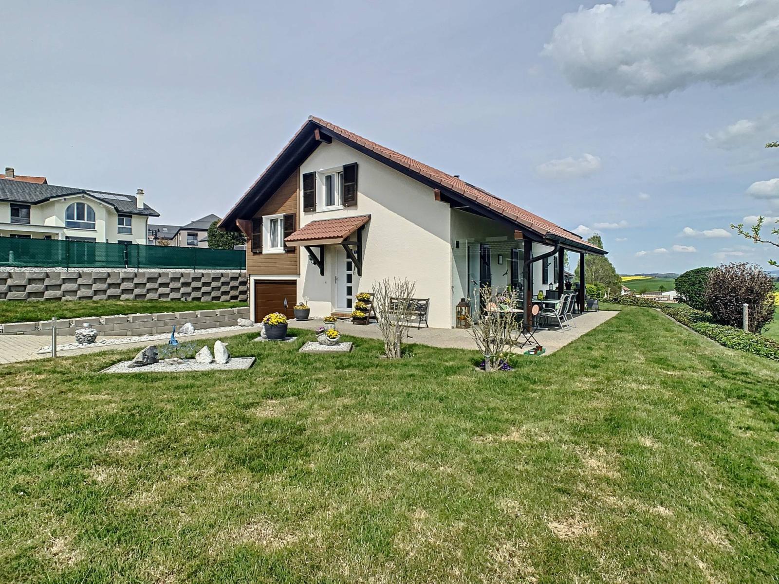 This 5.5-room detached villa located in Onnens (La Brillaz), built in 1987 and regularly renovated (from 2007 to 2021), located on a plot of 1,025 m² on the edge of an agricultural area, benefits from a magnificent unobstructed view of the Fribourg countryside. It has a total of 3 levels offering you a useful surface area of 168 m², including 128 m² of living space.