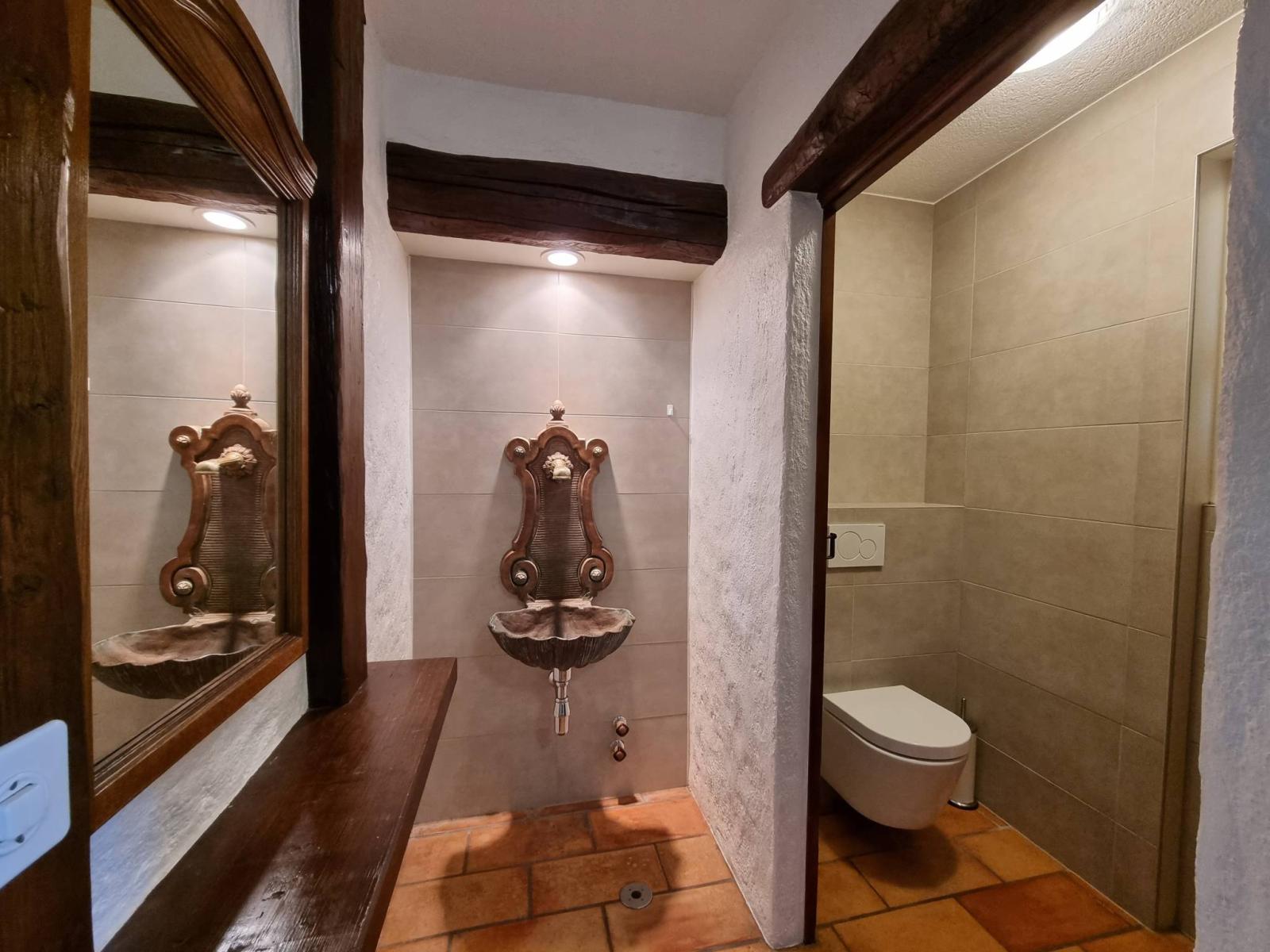 - 1X adjoining outbuilding with independent access = 1.5 room duplex with kitchen and shower room/WC + balcony. For friends/caretaker/or rent out