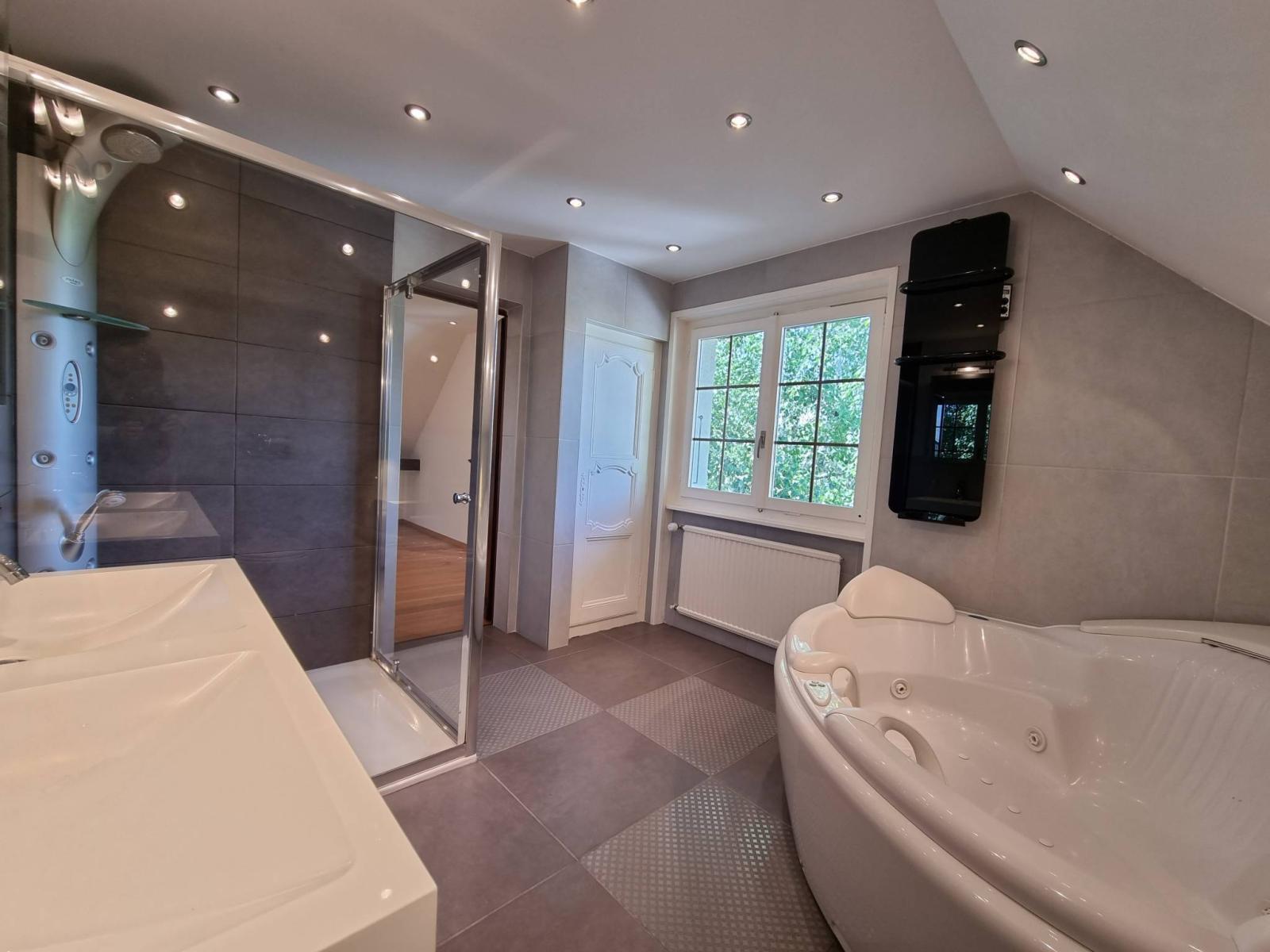 At the same time, it is a home with a successful search for light: Numerous bay windows like paintings on the outside. In addition, the bathrooms (bathtub and spa shower) are high-end for modern comfort.