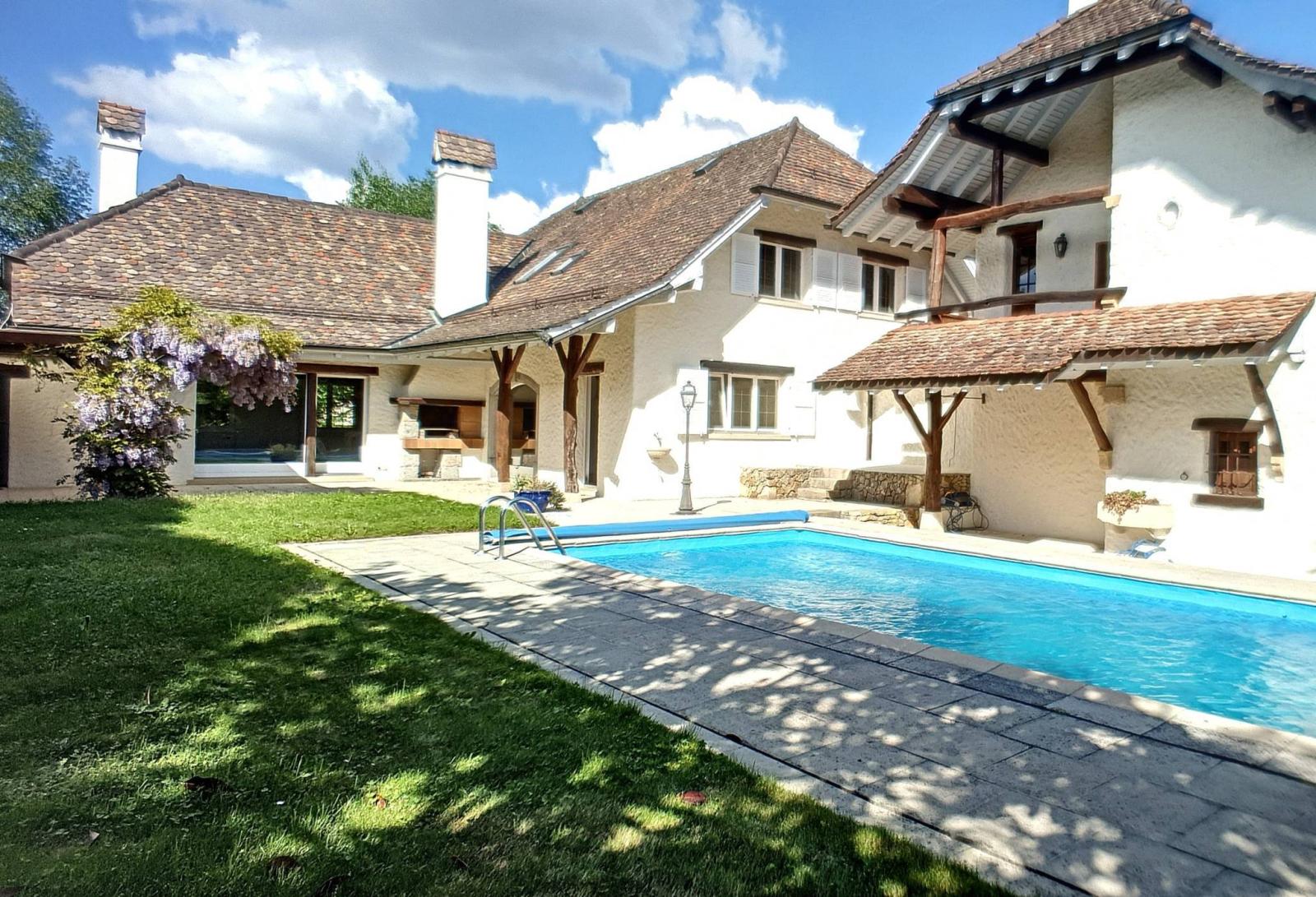This is a "favorite" detached villa located on 1,460 m² of land, built over several years since 1980 in a spirit that combines comfort with character. In particular with old elements mixed with the construction of the time respecting a warm atmosphere (terracotta floors and oak parquet floors). For example the two Burgundy stone fireplaces and the 200-year-old beams; the indoor fountains in the duplex and the main house; the old-fashioned doors in walnut, oak and ash... and other carefully chosen antique details.