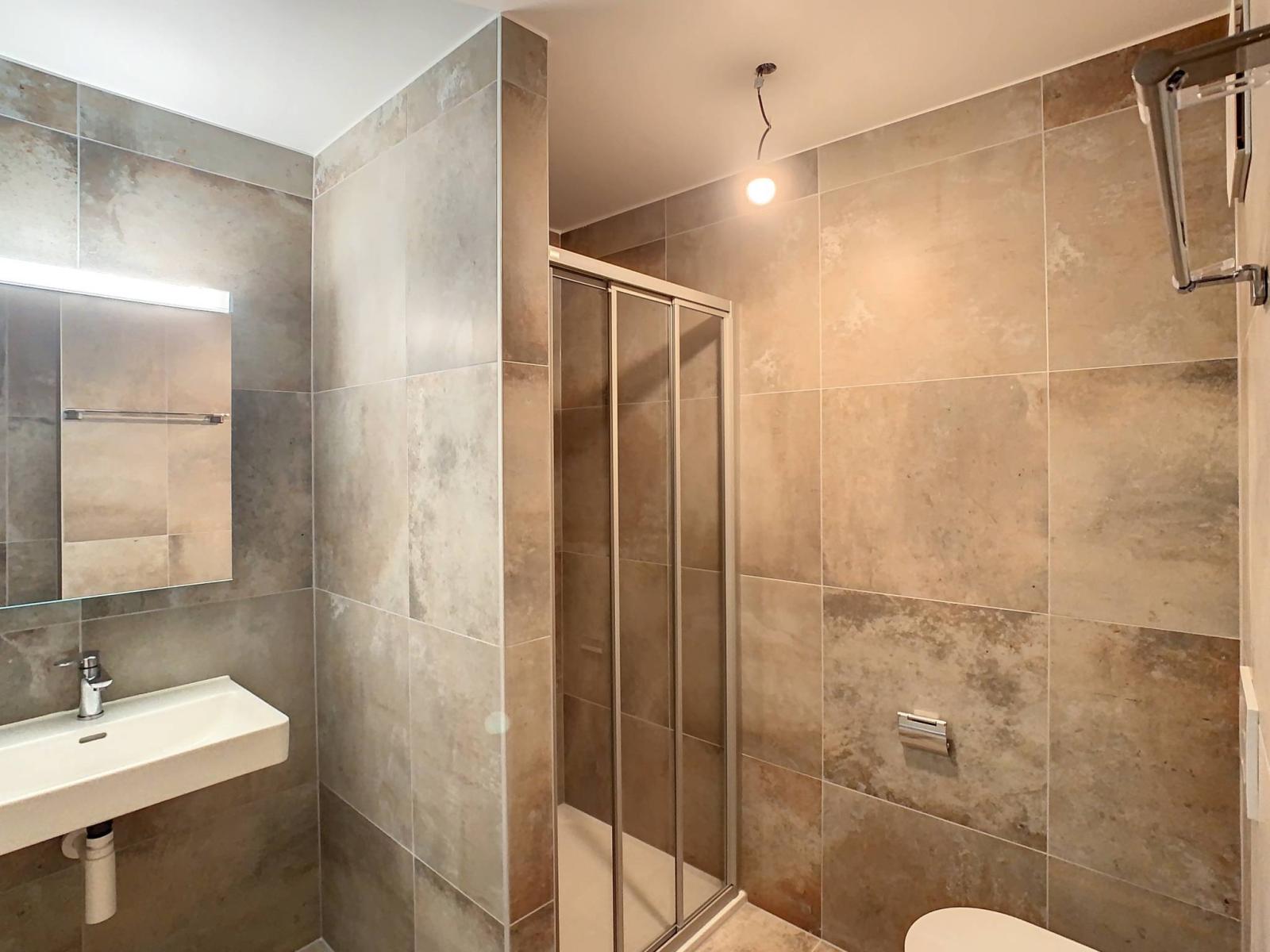 It consists of an entrance hall with wardrobe, a large living room/kitchen of 41 m², a spacious master bedroom of 20 m² with a private bathroom, another bedroom of 16 m² as well as a WC/shower equipped with a connection for washing columns.