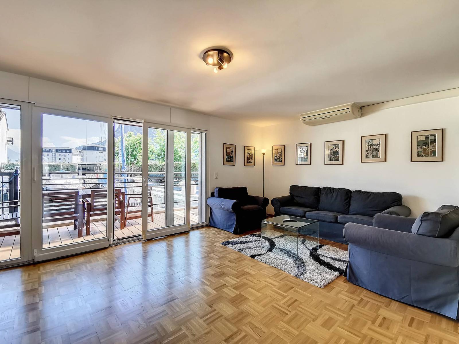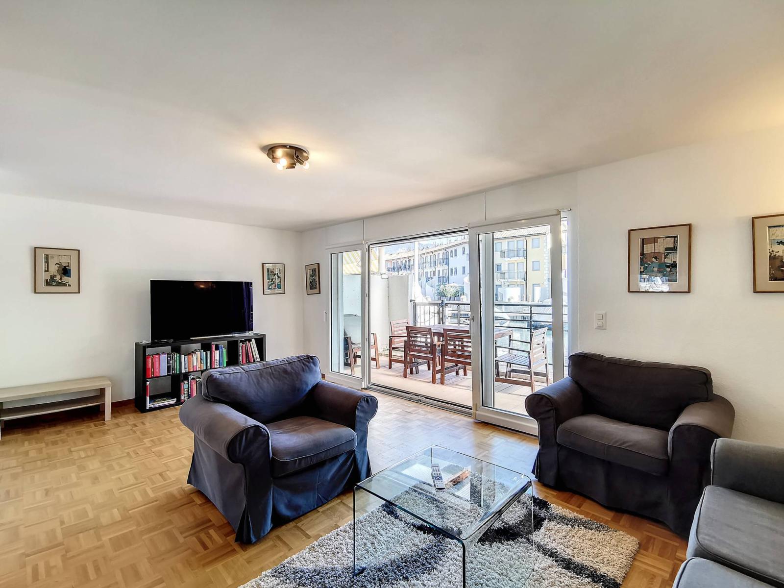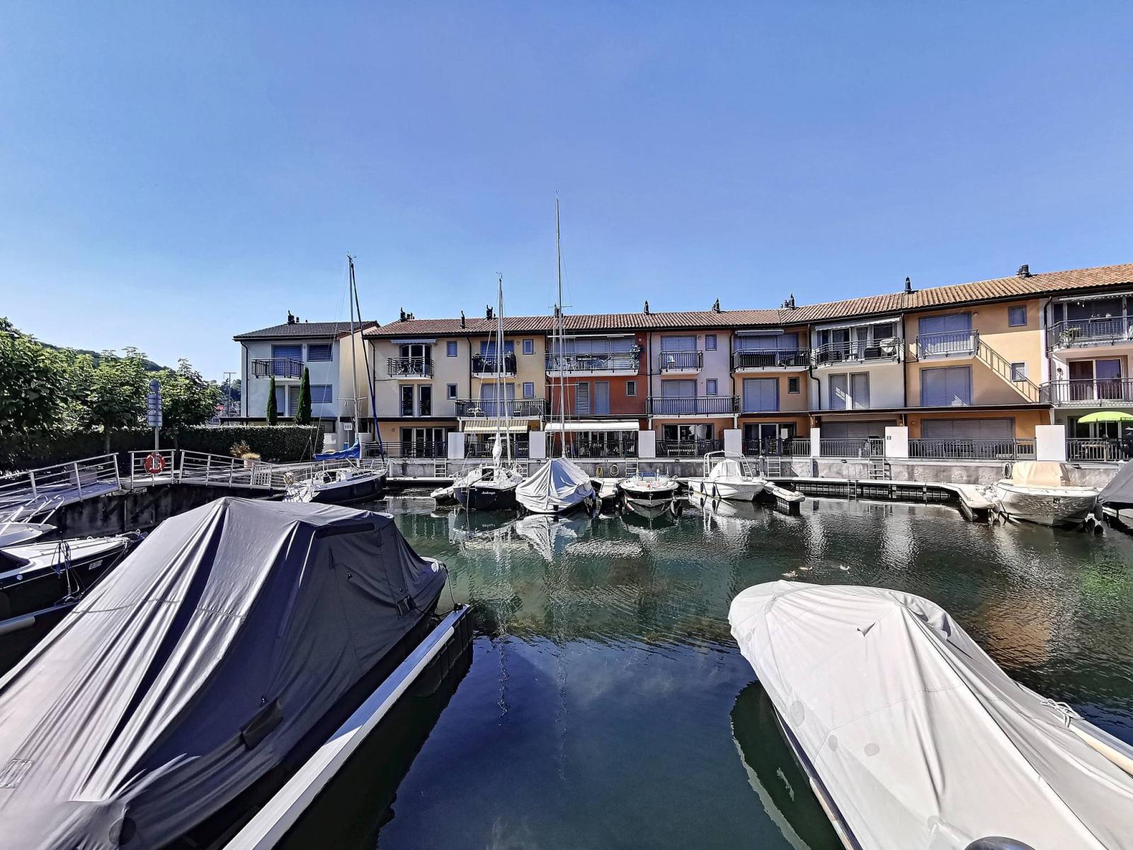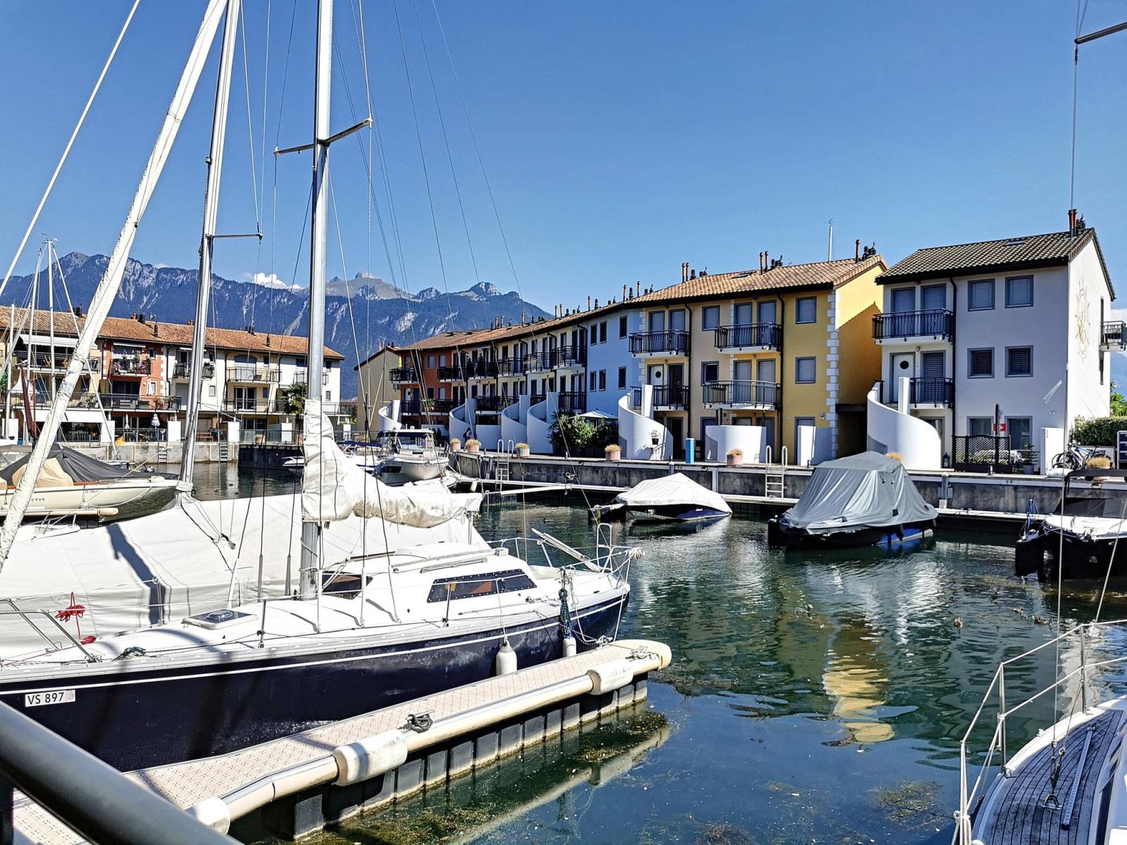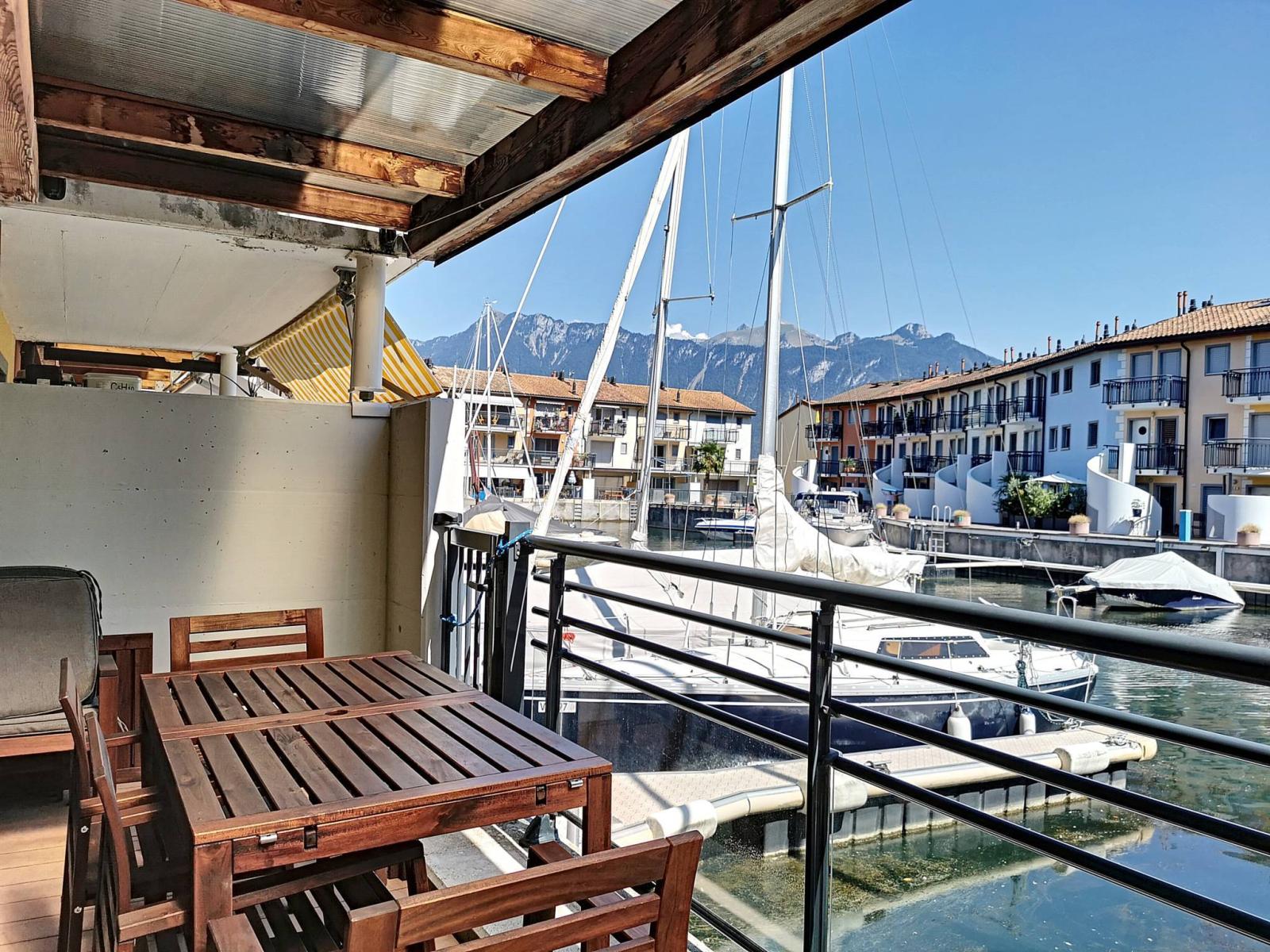 This spacious 4.5 room apartment is located on the ground floor and 1st floor of the renowned Marina du Bouveret/Port-Valais. It has approximately 141 m², with two terraces and a pergola.