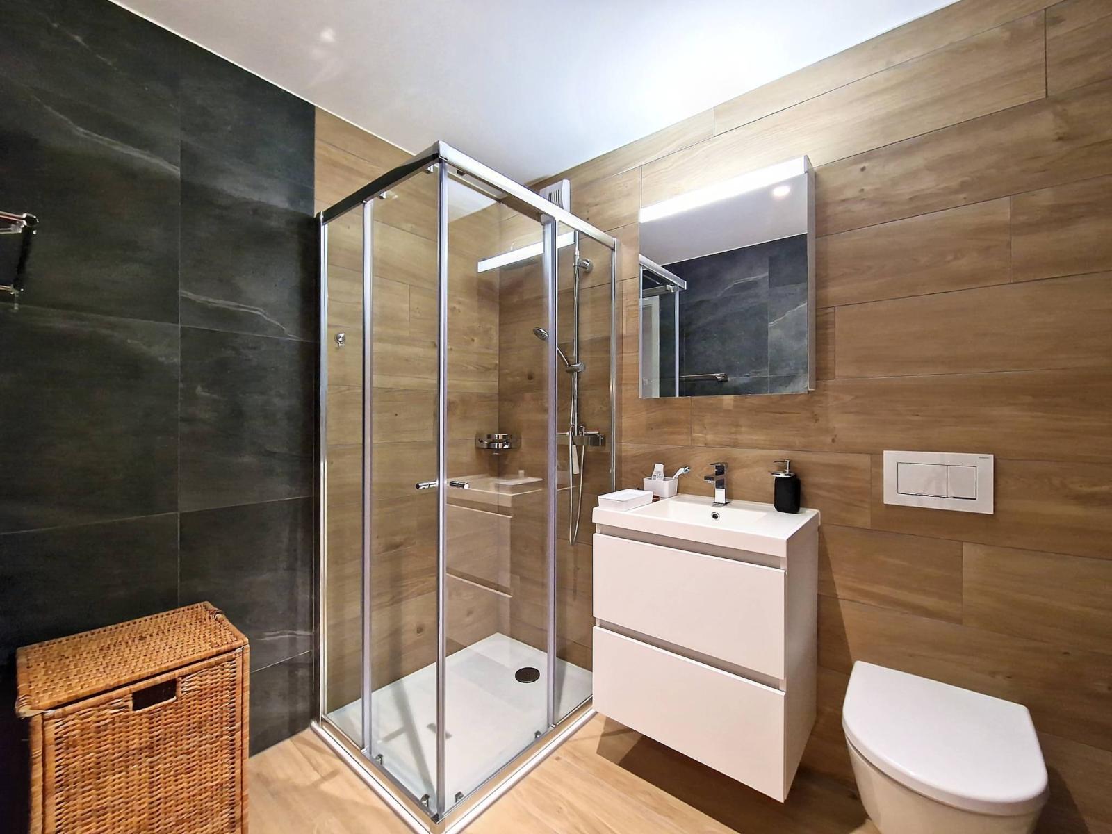 The spacious shower room is equipped with a washing column. The hot water and the underfloor heating are connected remotely and allow you to benefit from lower than average charges.