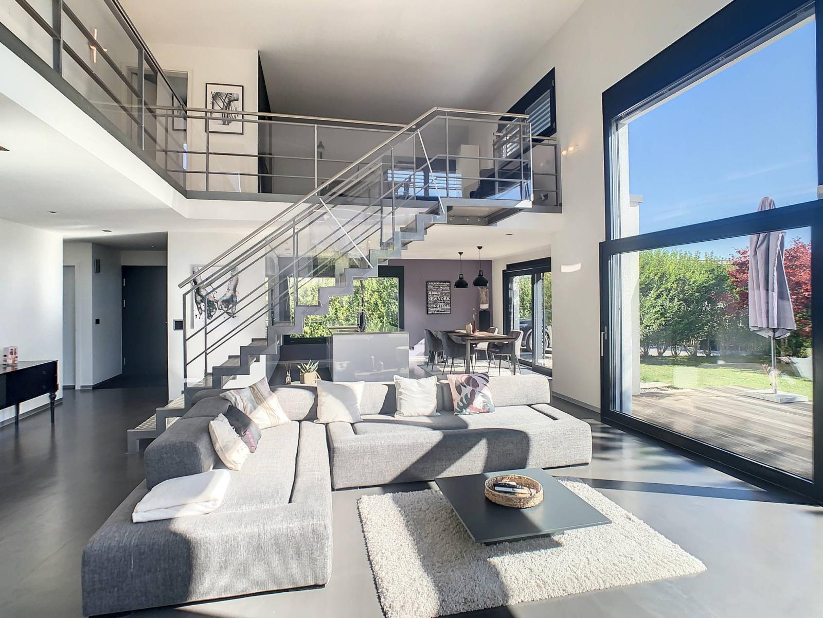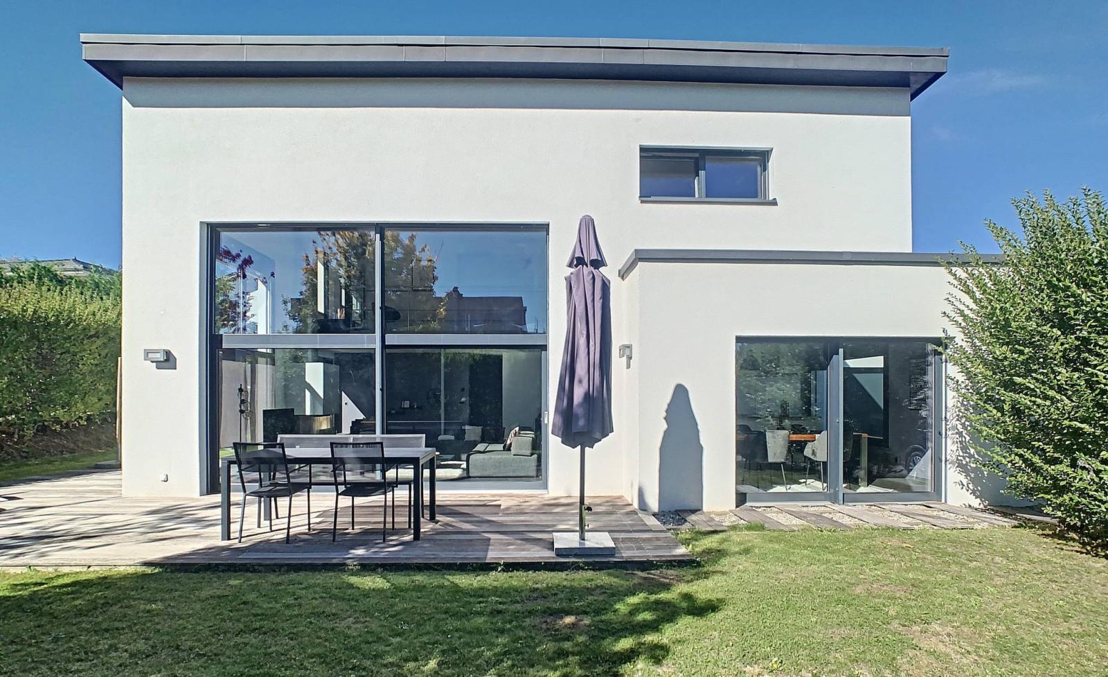 Built in 2007, this charming contemporary villa located in the commune of Avry, facing south, benefits from a calm and green environment located in a dead end. It offers 152 m² of usable space including 142 m² of living space, spread over 2 levels. Located on a beautiful plot of 600m², it will seduce you with its large bay windows, its brightness, its volumes and its magnificent "Pandomo" resin floor.