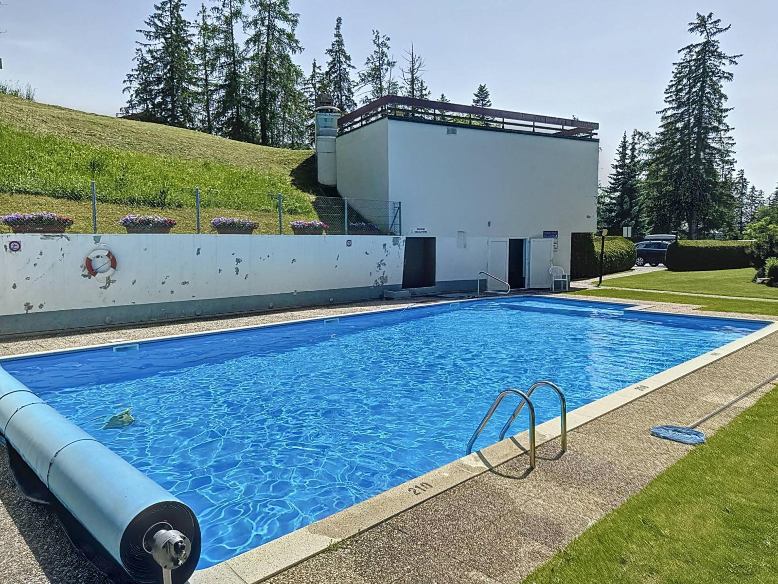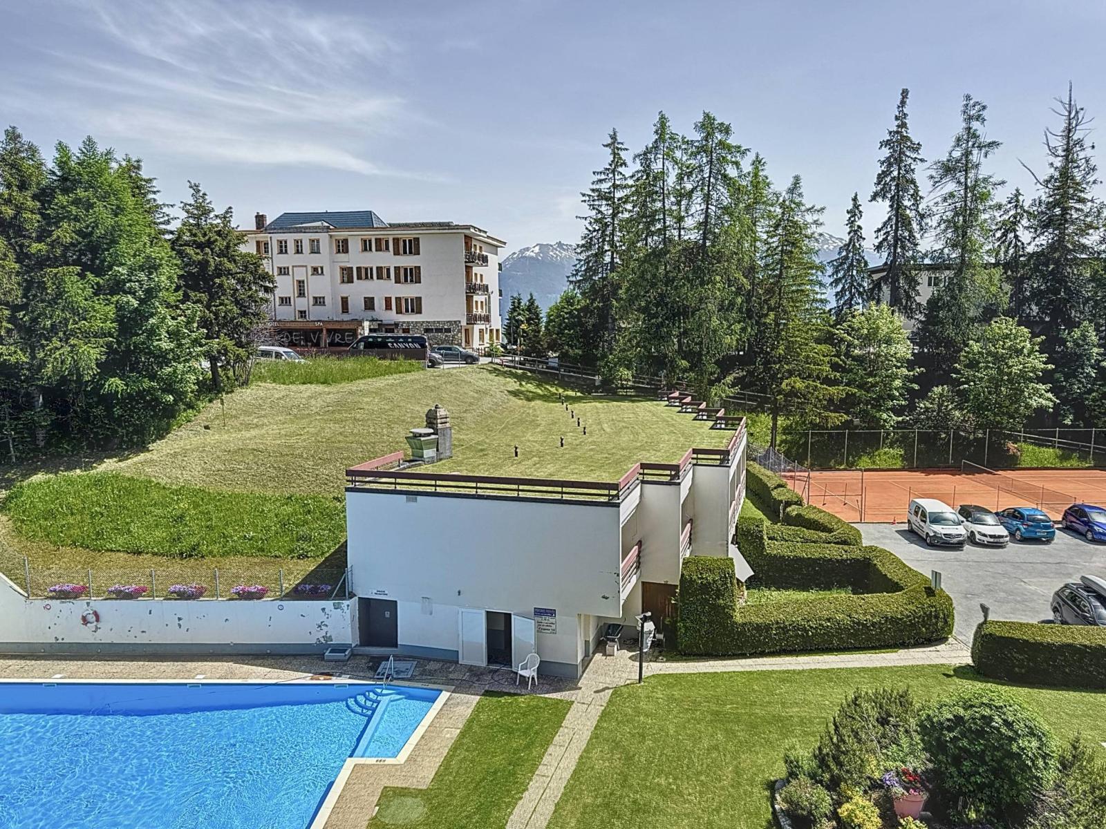 In summer, the condominium benefits from a beautiful outdoor swimming pool with its garden and a beautiful tennis court. The building benefits from private outdoor parking and it is possible to rent an indoor parking space in the car park located next to the residence.