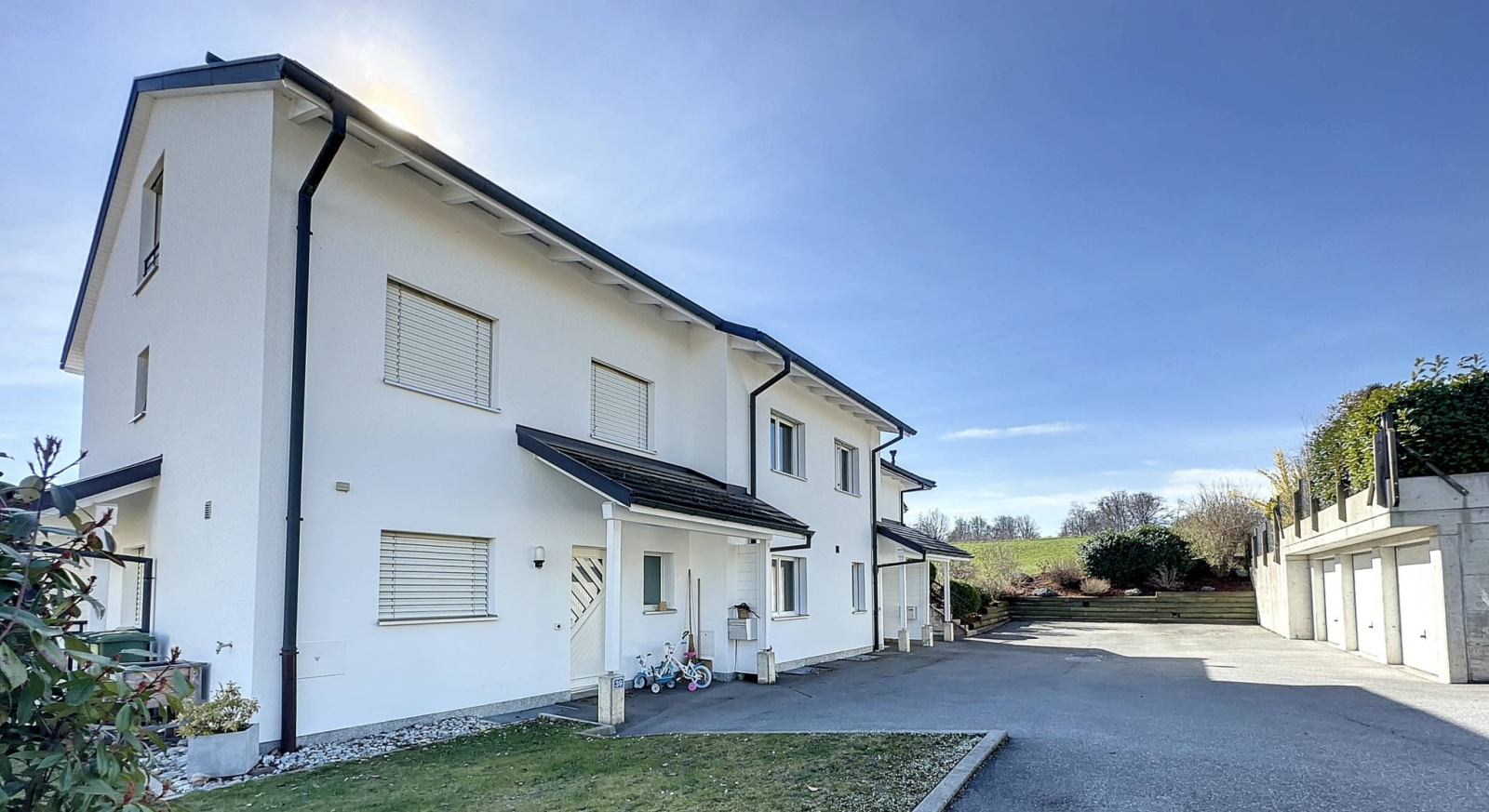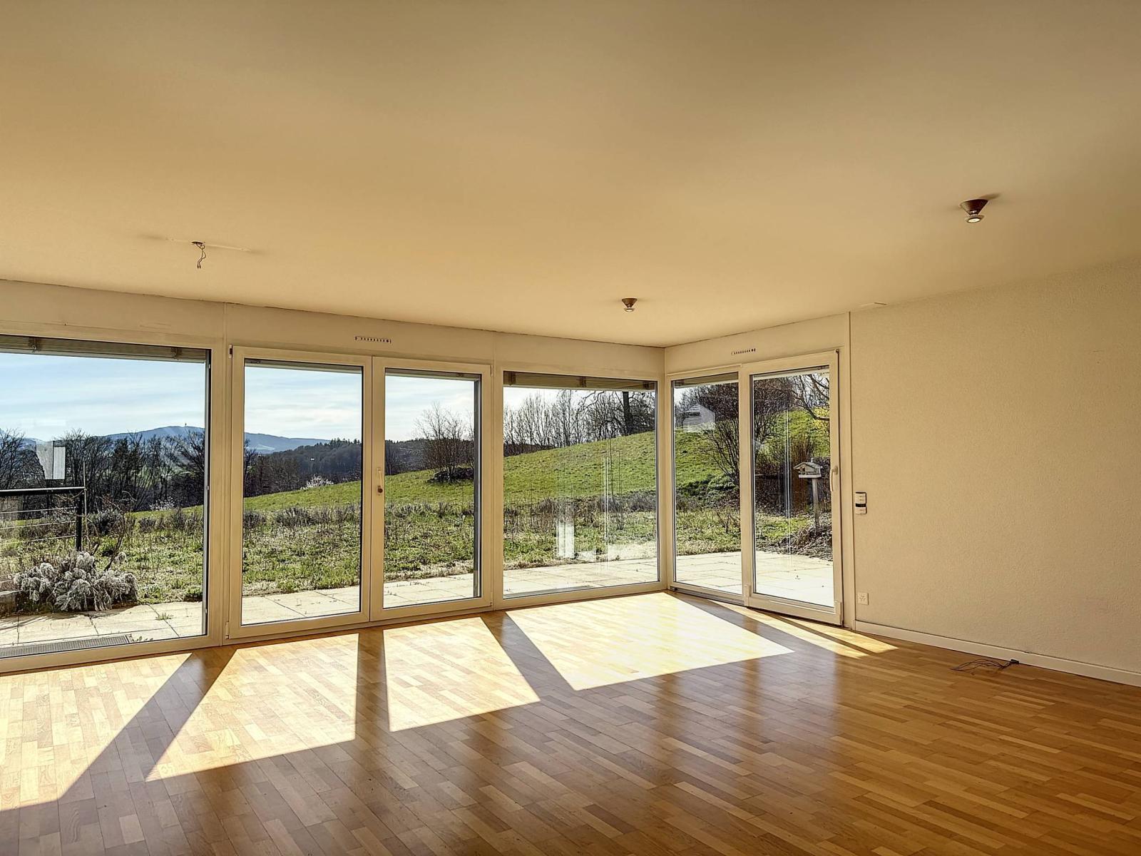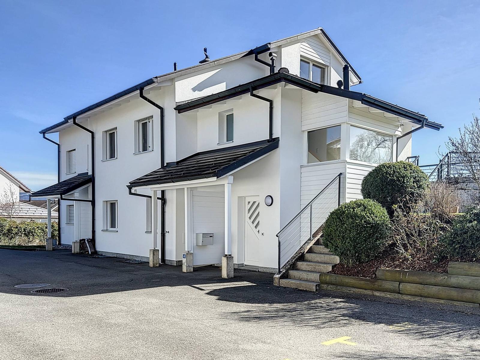 Located in a 3-unit condominium built in 2001, this charming 4.5-room duplex apartment has a total of 114m² of living space, completed by a 23m² basement as well as a terrace and a private garden totaling 222m². It is located in a quiet, residential area on the edge of an agricultural zone.