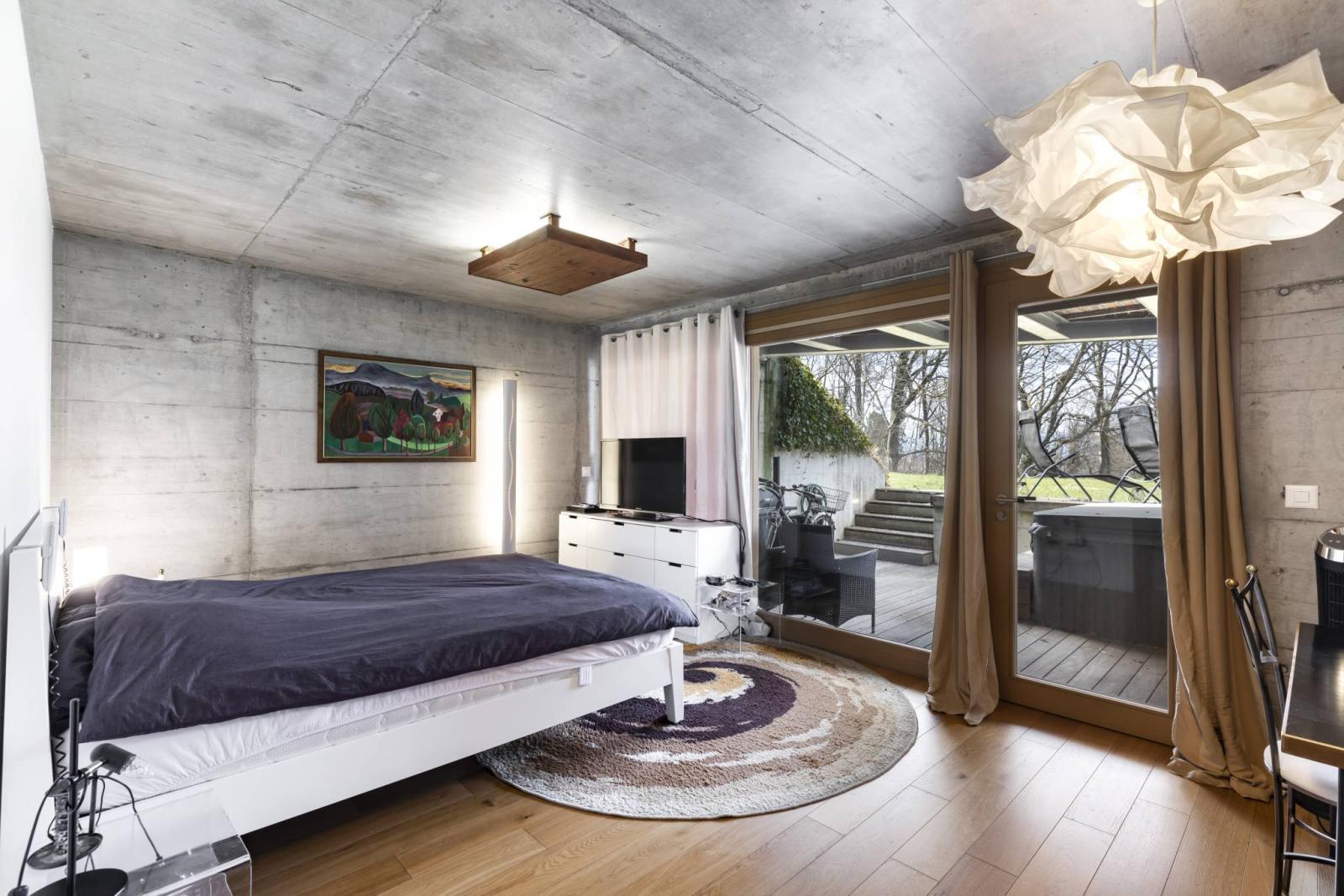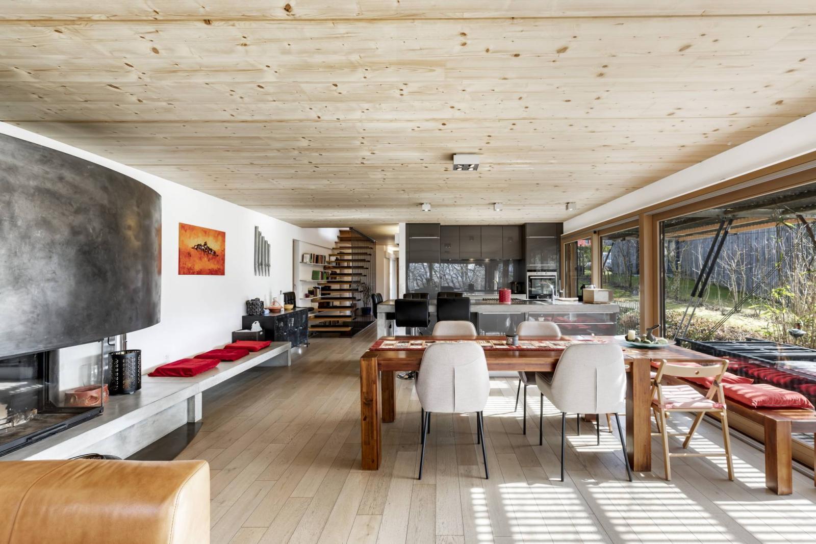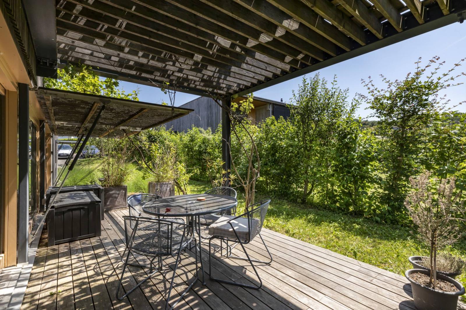 This beautiful architect-designed house is ideally located in a residential area of Cheseaux-Noréaz, close to all amenities and the town of Yverdon-les-Bains. Located on a beautifully wooded plot of 732 m², it enjoys a green setting on the edge of the forest.