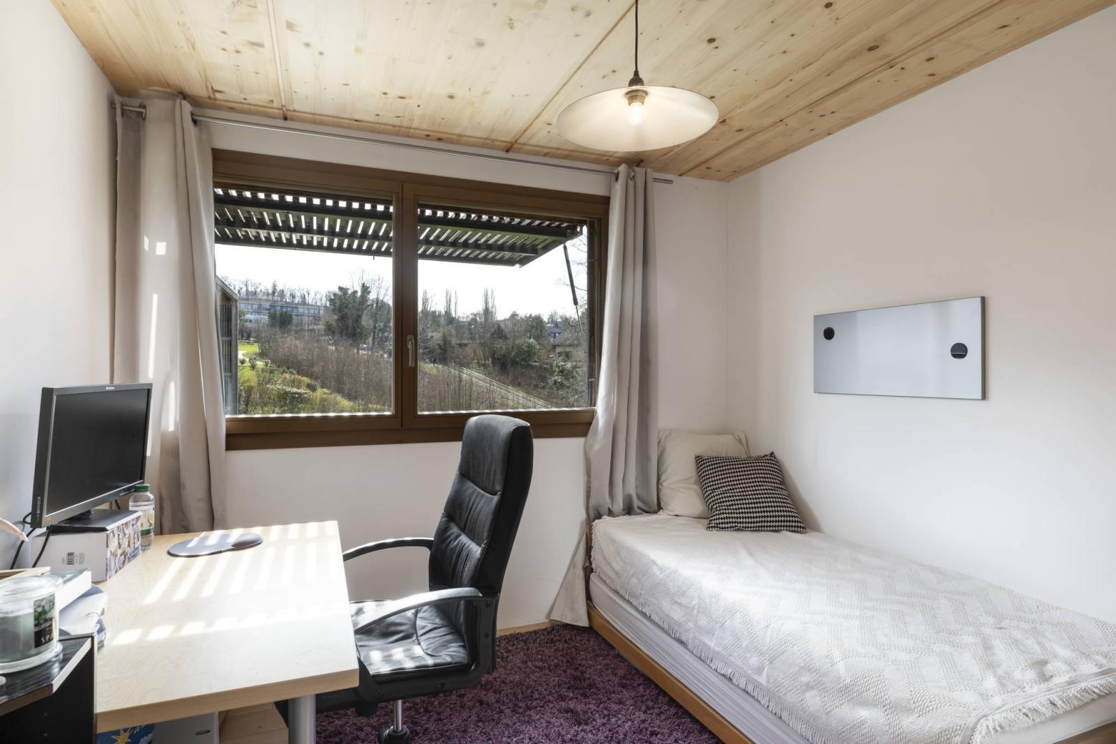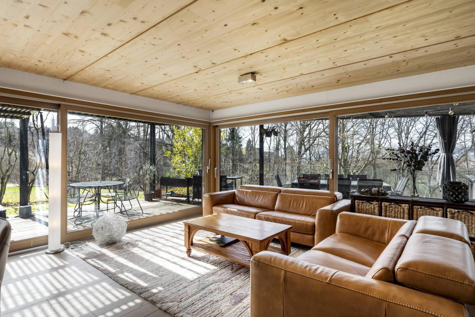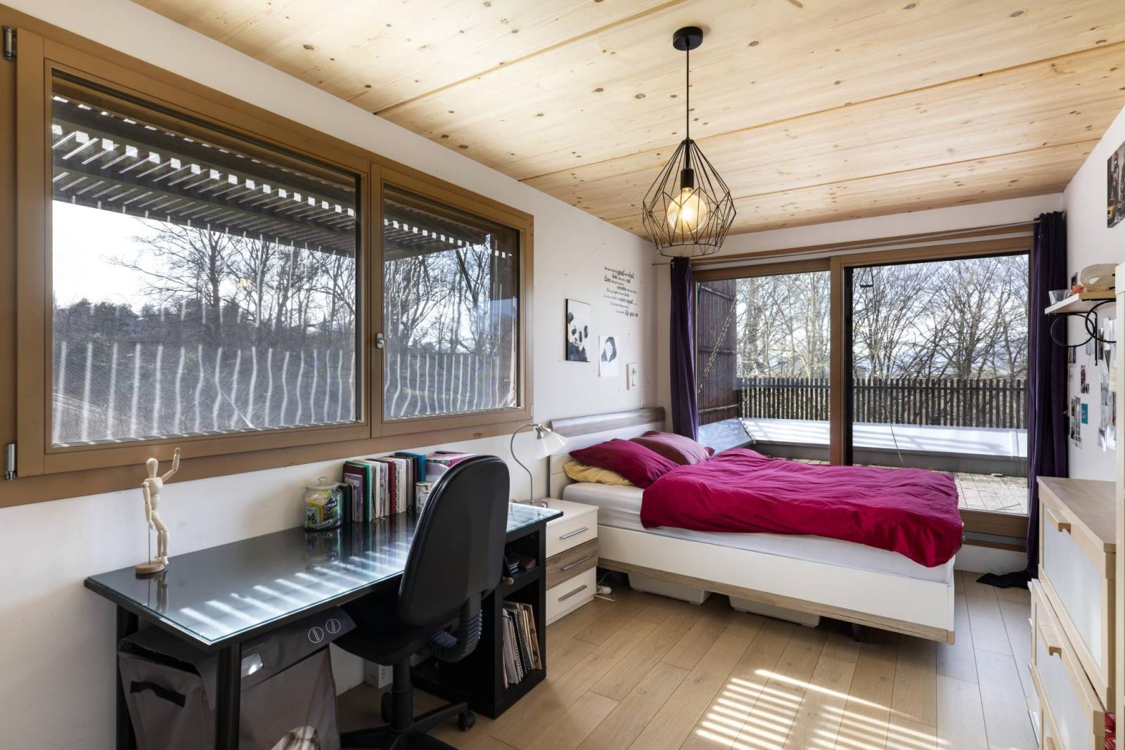 This beautiful architect-designed house is ideally located in a residential area of Cheseaux-Noréaz, close to all amenities and the town of Yverdon-les-Bains. Located on a beautifully wooded plot of 732 m², it enjoys a green setting on the edge of the forest.