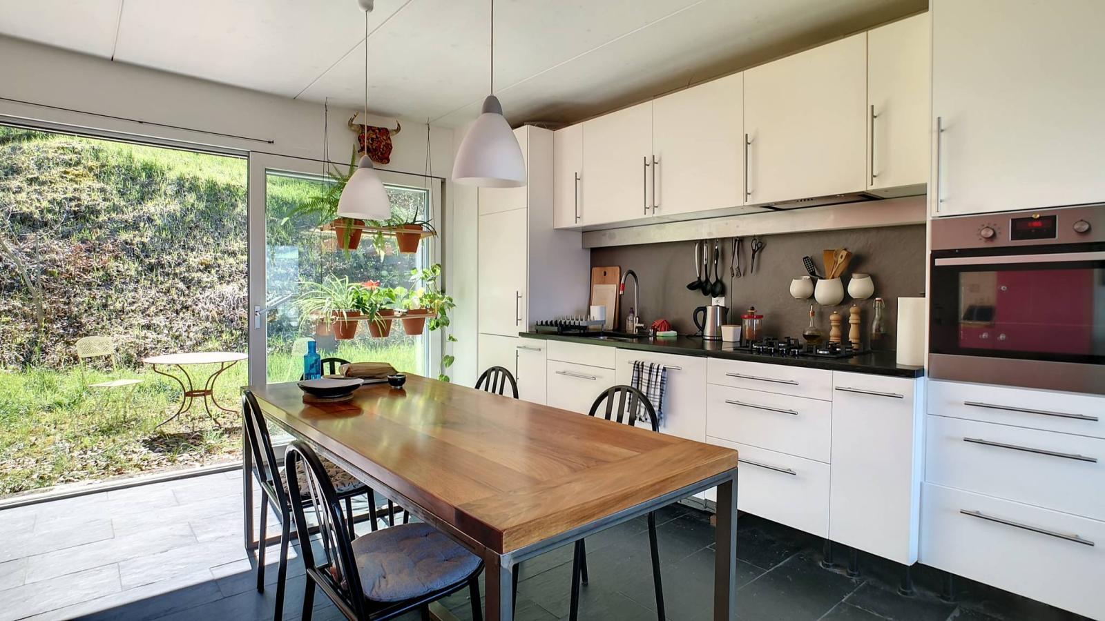 Built in 2013 with quality materials, the villa benefits from a modern and well-designed architecture that offers its inhabitants functional volumes as well as beautiful natural light from morning to evening. Its generous living space of approximately 210 m² is spread over 2 levels and currently includes an independent 2.5-room apartment on the ground floor. The distribution has been designed so that each of the rooms benefits from a lovely view of the outside.
