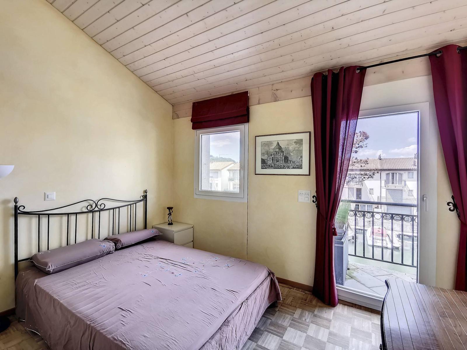 - A bedroom with its balcony;