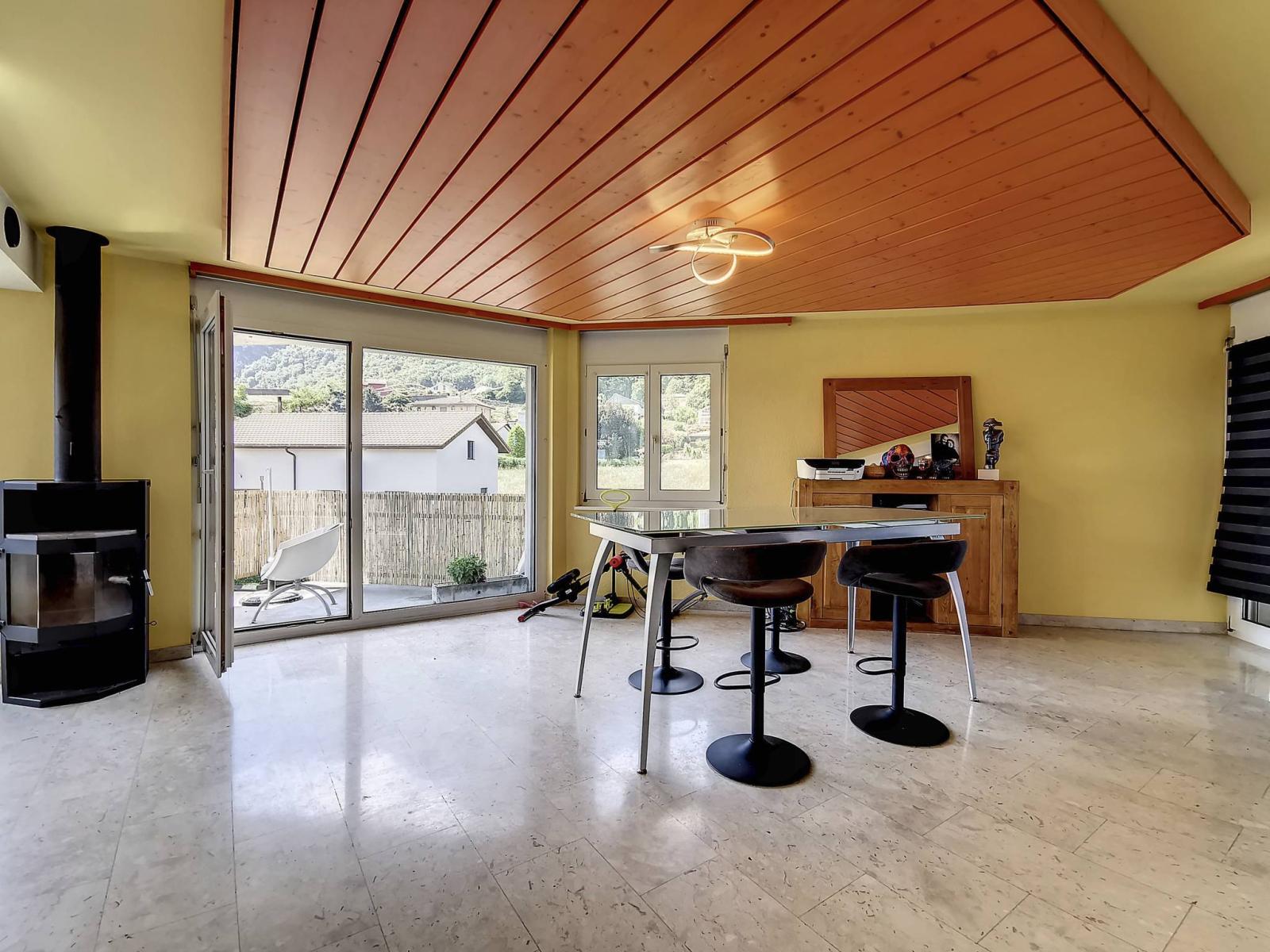This rental building with 4 apartments ranging from 2.5 to 5.5 rooms + two storage rooms/available rooms that can be used as an office, was built in 1992 and is located in the center of the village, close to the train station and all amenities.