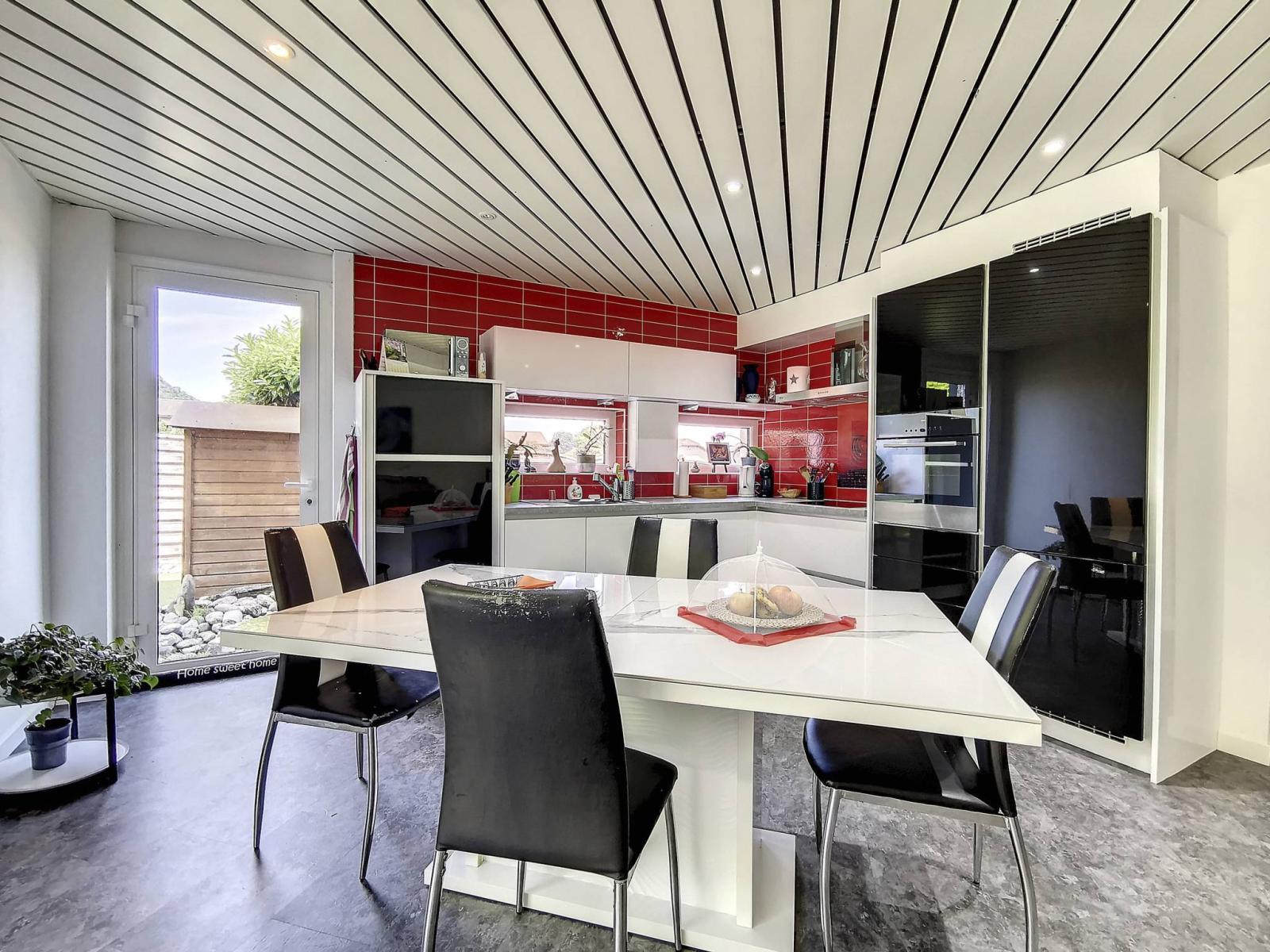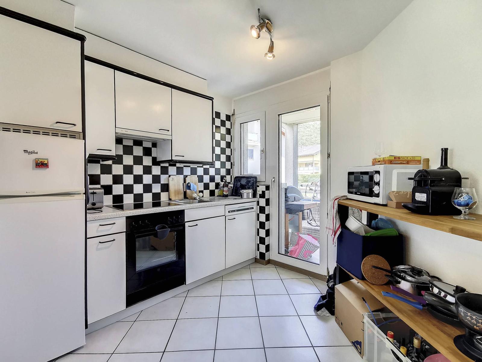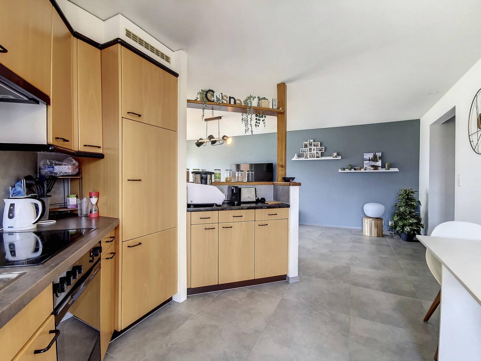 - 4.5 room apartment of approximately 105 m² of living space + an adjoining cellar and a garden terrace of approximately 100 m² + outdoor storage room complete this property which has recently been renovated.