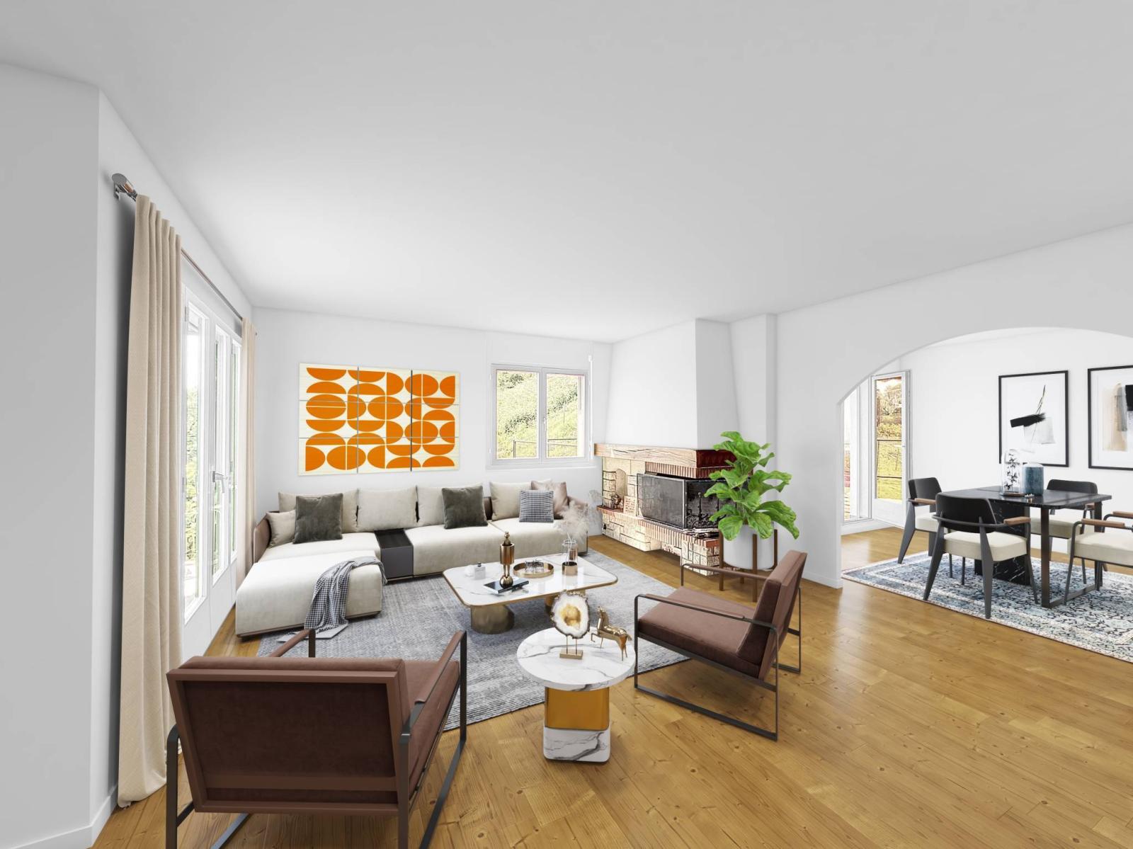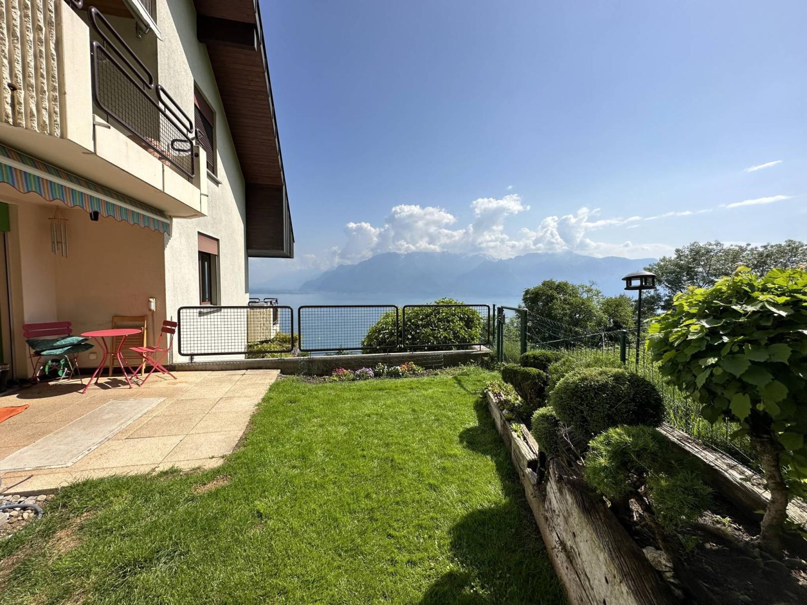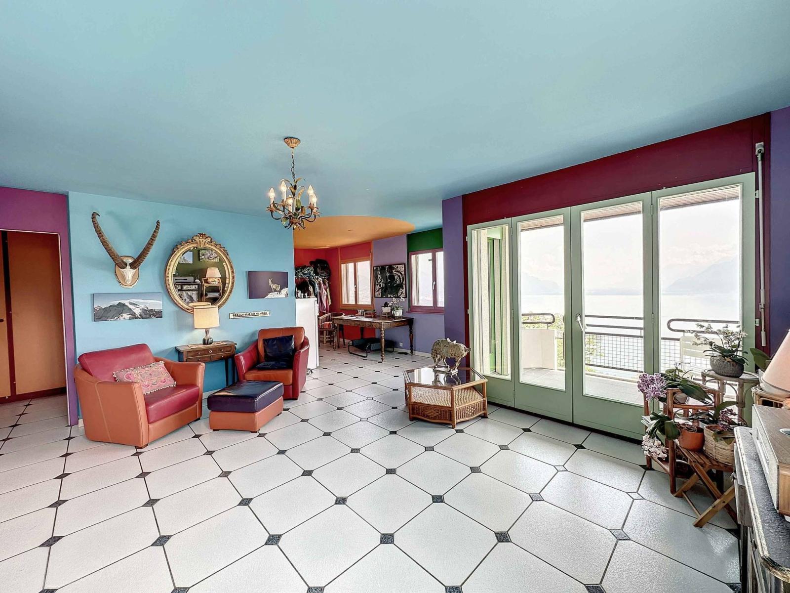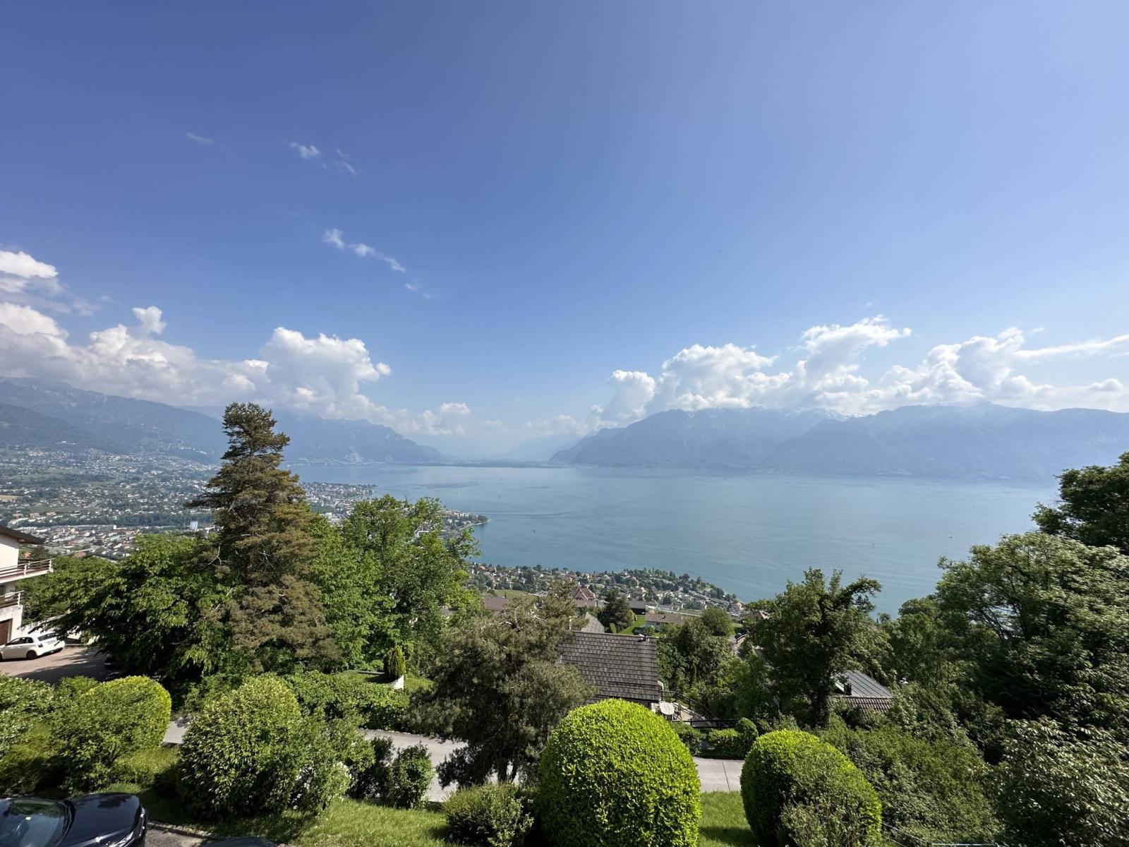 Its southwest orientation provides optimal light as well as a superb panoramic view of Lake Geneva and the mountains.