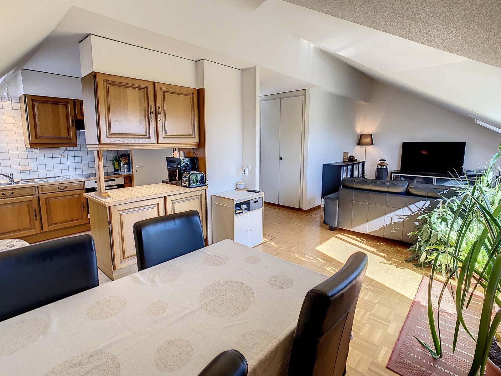 This charming 4-room apartment is located on the 2nd and top floor of a small condominium (without elevator) in the heart of the village of Vernier and all its amenities.
