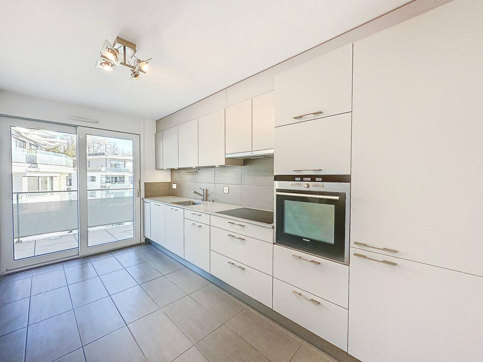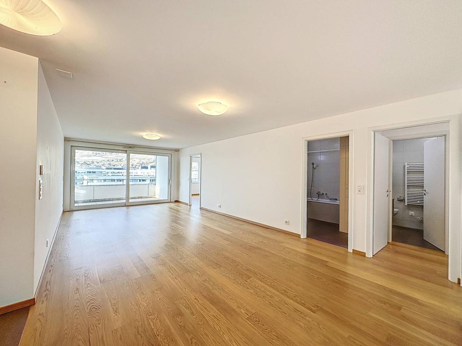 This beautiful, bright apartment has 4.5 rooms. It is located on the fifth floor of a recently built building, perfectly maintained and benefiting from very good sound and thermal efficiency.