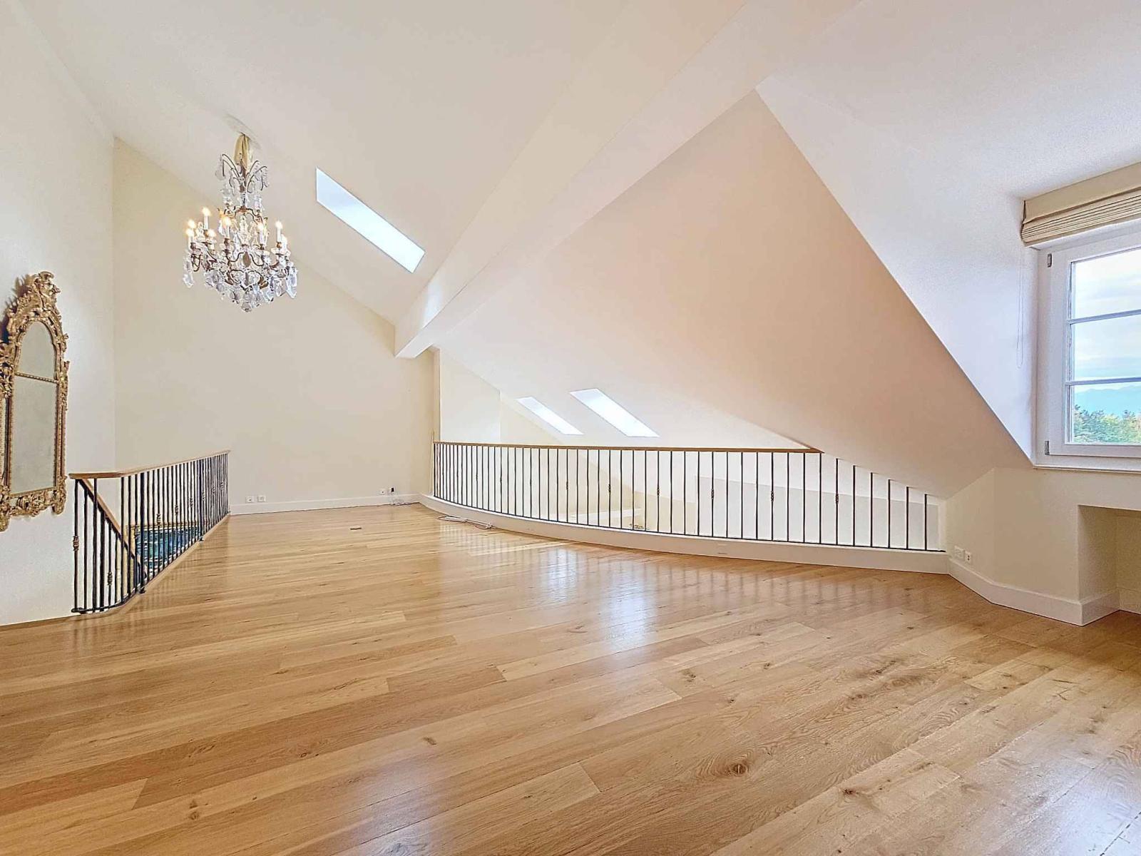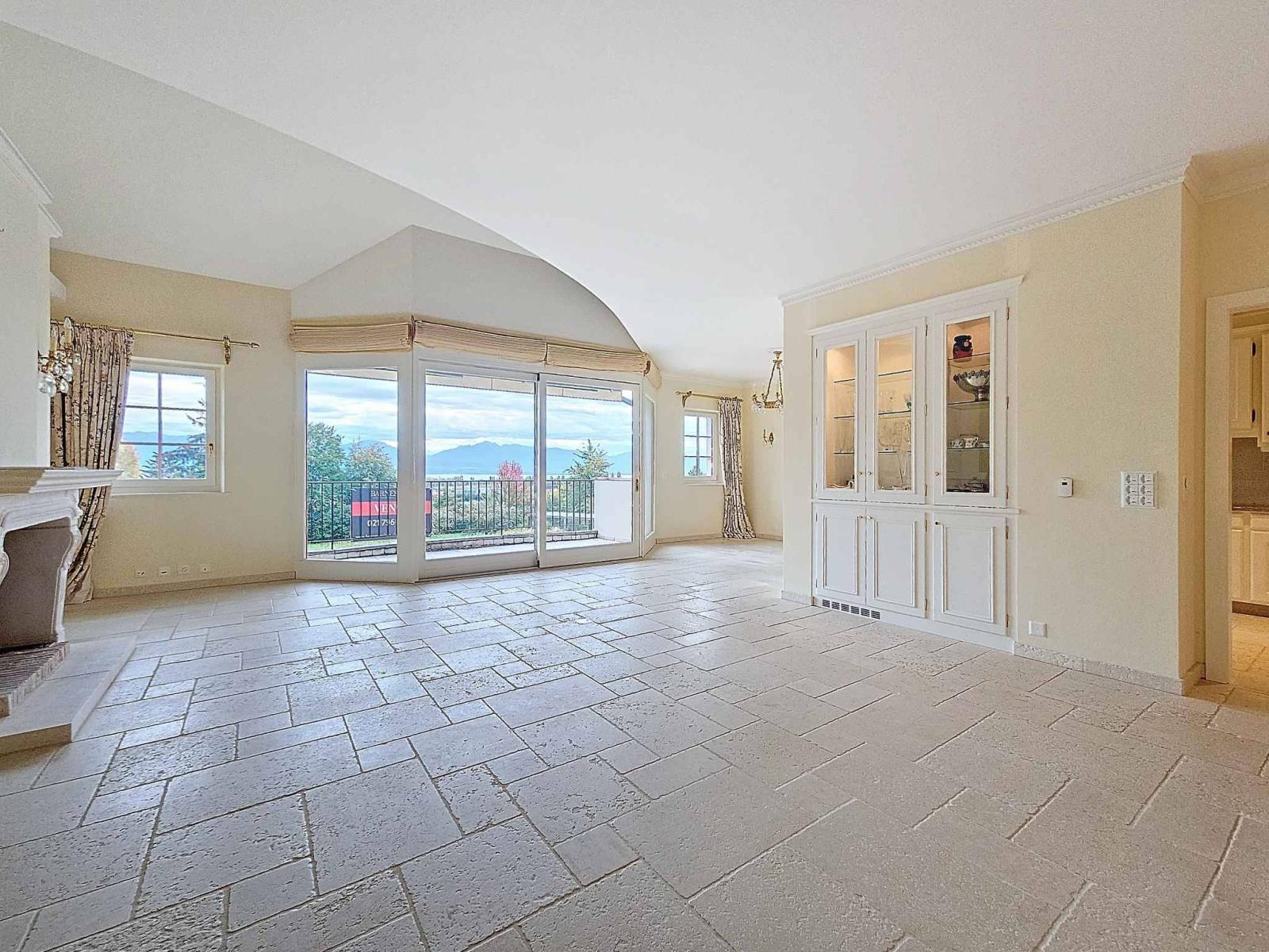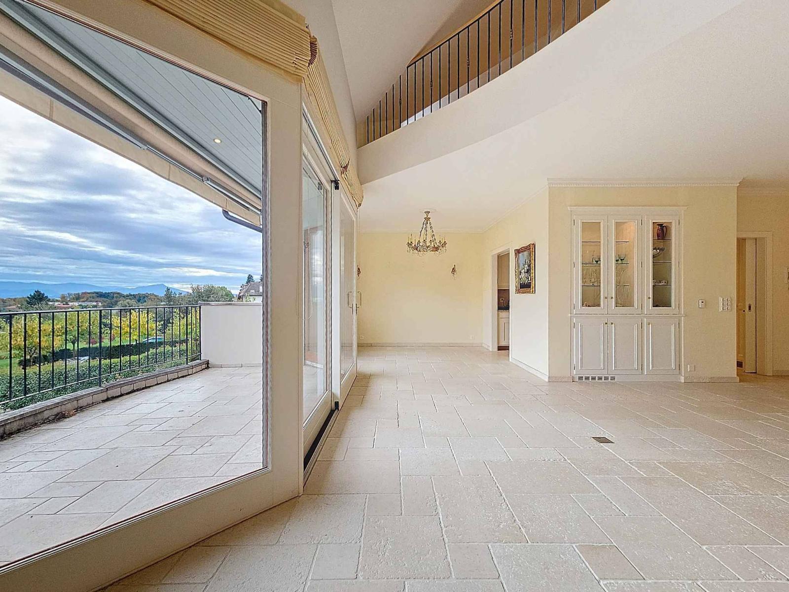 In the heart of the famous village of Tolochenaz, discover this splendid 7.5-room flat that has a duplex section while keeping the essentials on a single level. It was built in 2006 using the finest materials (Burgundy stone fireplace; oak parquet flooring; Israeli sandstone) in a top-of-the-range secure residence with gates and lift. It has 4 bedrooms and a lovely high ceiling throughout the flat, including a void in the living room. It has been luxuriously fitted and decorated to create a cosy atmosphere, and all the blinds are electric. The south-facing balcony is deep enough for conversion and to take advantage of the lovely lake views.