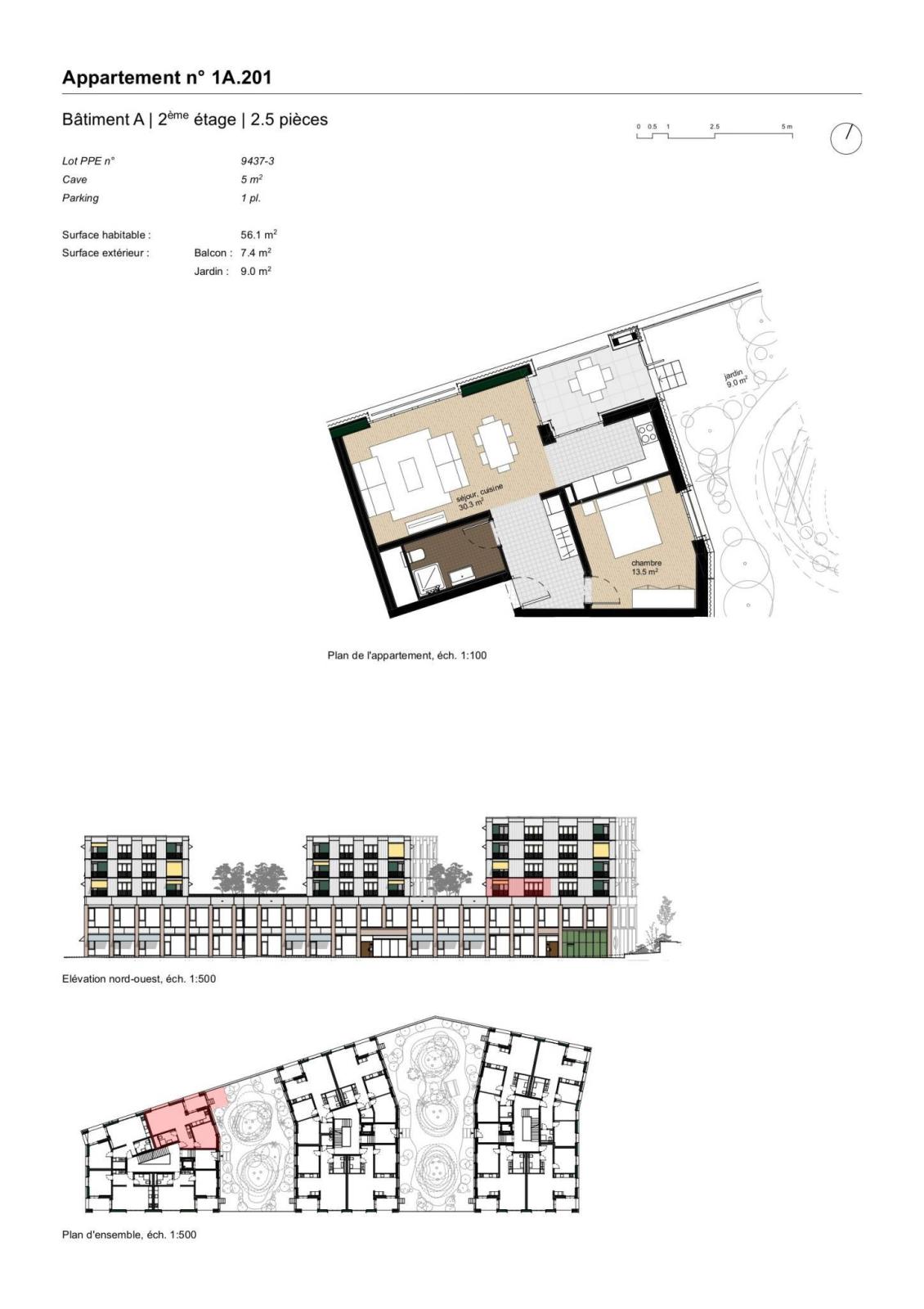 28 2.5 room apartments between 49 and 68 m² + loggia105 parking spaces, including 38 visitor spaces
