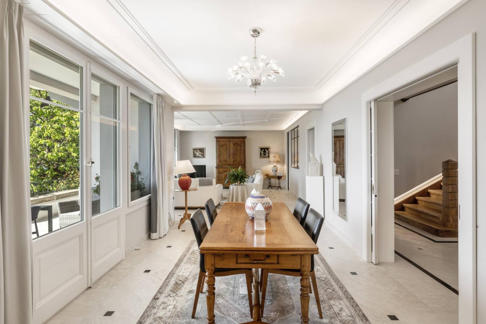 Nestled in the heart of the charming village of Corseaux, this splendid 10-room Manor property elegantly combines timeless charm with contemporary elements. Built in 1930, in the midst of the Cubism and Art Deco era, the house underwent a complete renovation in 2018 (complete insulation of the building and roof, triple-glazed windows, pipes, electricity, floors, bathrooms, kitchen, paintings, heating, etc.) thus preserving its historical heritage while adding a touch of refined modernity.