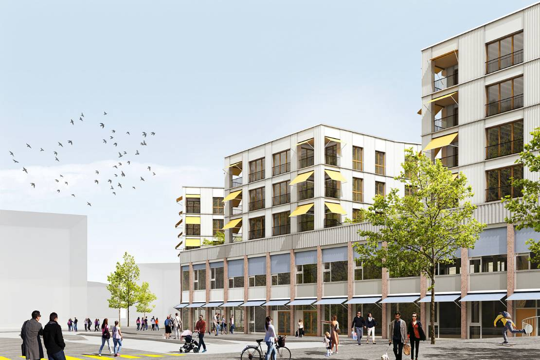 The project is developed in mixed wood and concrete construction, labeled Minergie-P and SNBS.