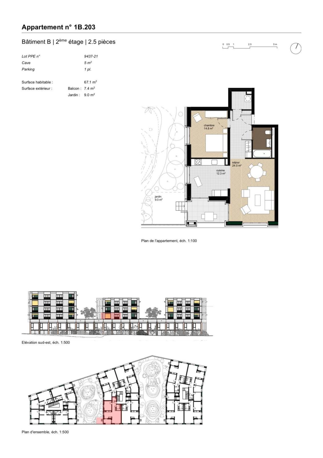 28 2.5 room apartments between 49 and 68 m² + loggia105 parking spaces, including 38 visitor spaces