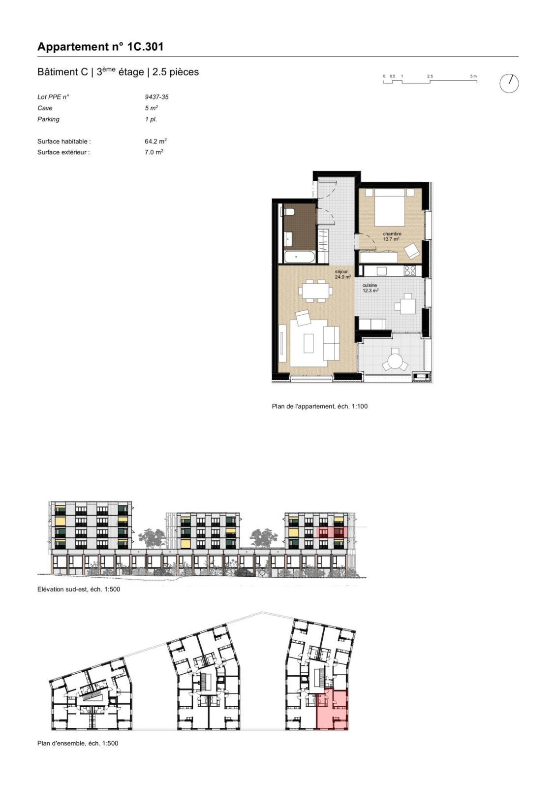 28 2.5 room apartments between 49 and 68 m² + loggia105 parking spaces, including 38 visitor spaces