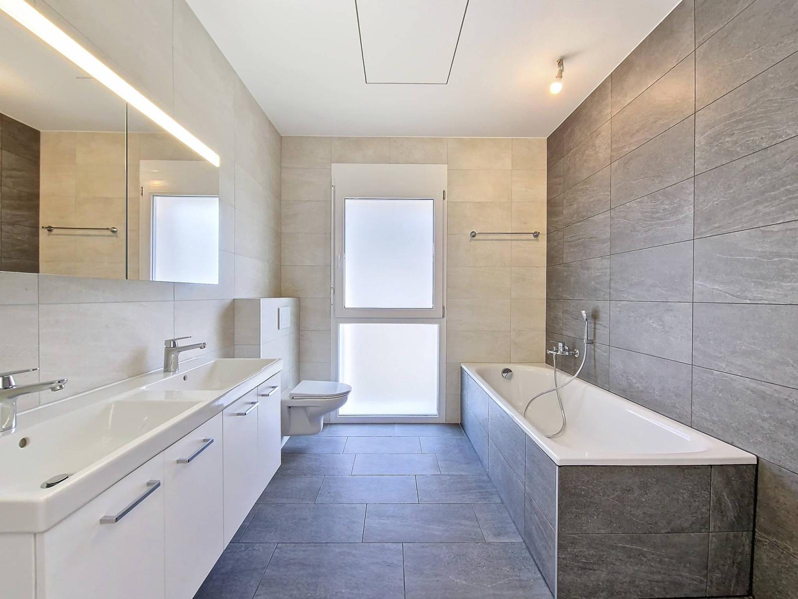 A finished basement, consisting of a cellar, a laundry room as well as additional space for a games room, a gym or a home office is available according to your needs.