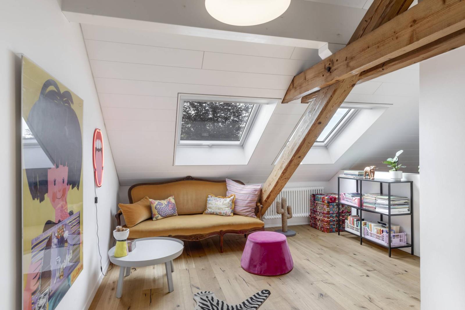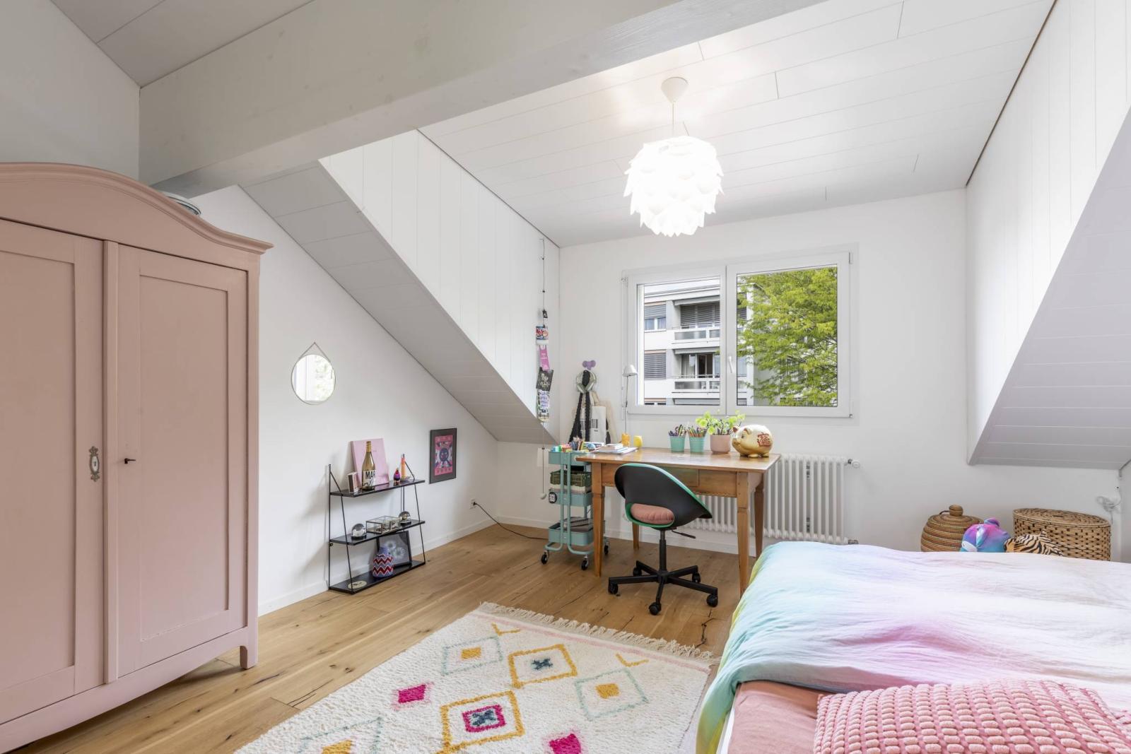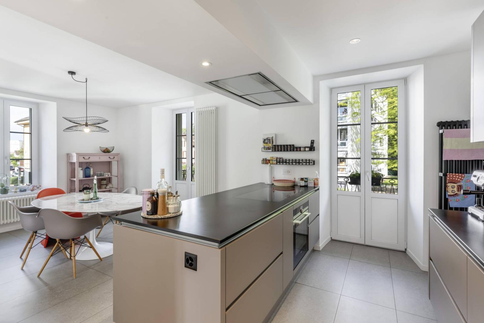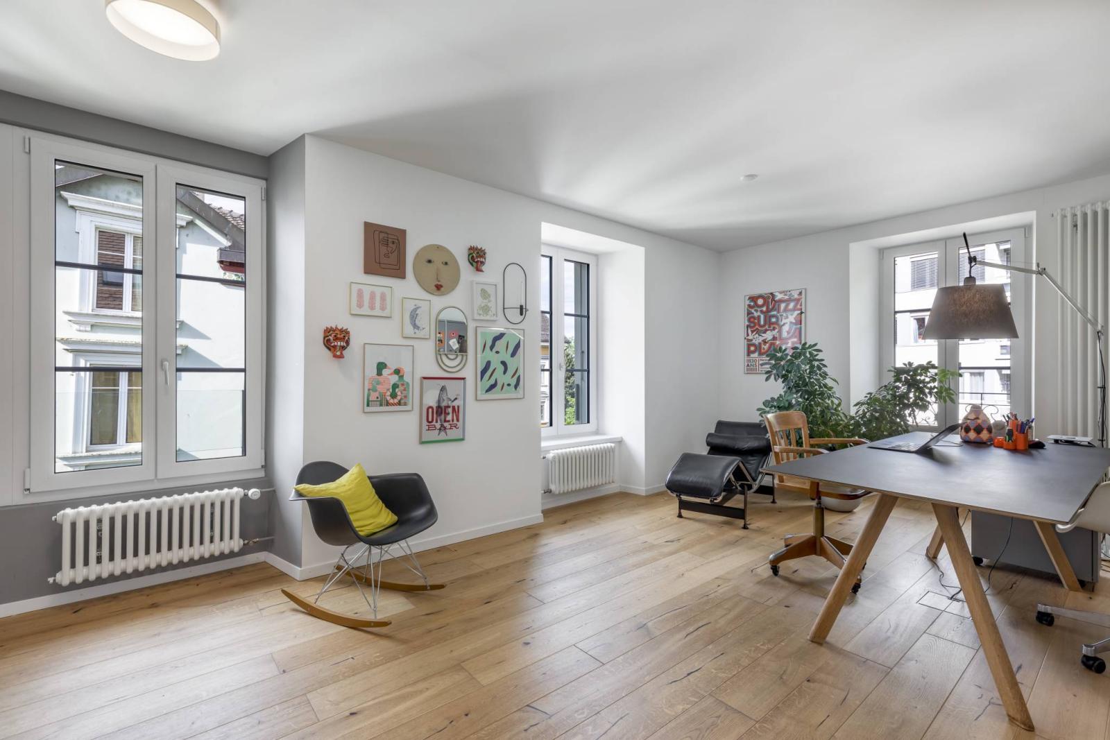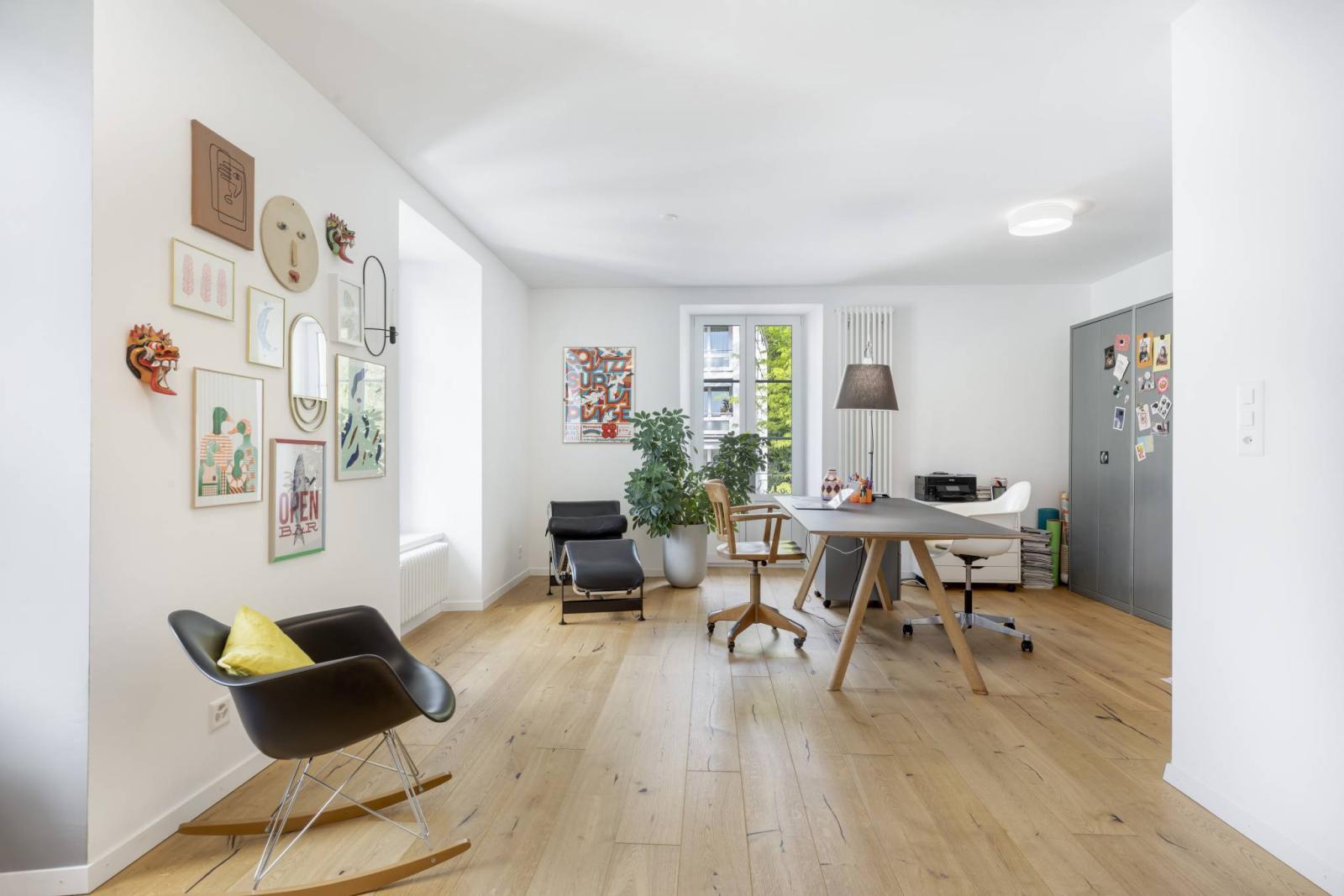 The building, spread over four floors and a basement, has an elegant architecture and an undeniable cachet. The ground floor houses a 3.5-room apartment, currently rented, while the three upper floors accommodate the main residence, composed of five spacious and bright rooms.