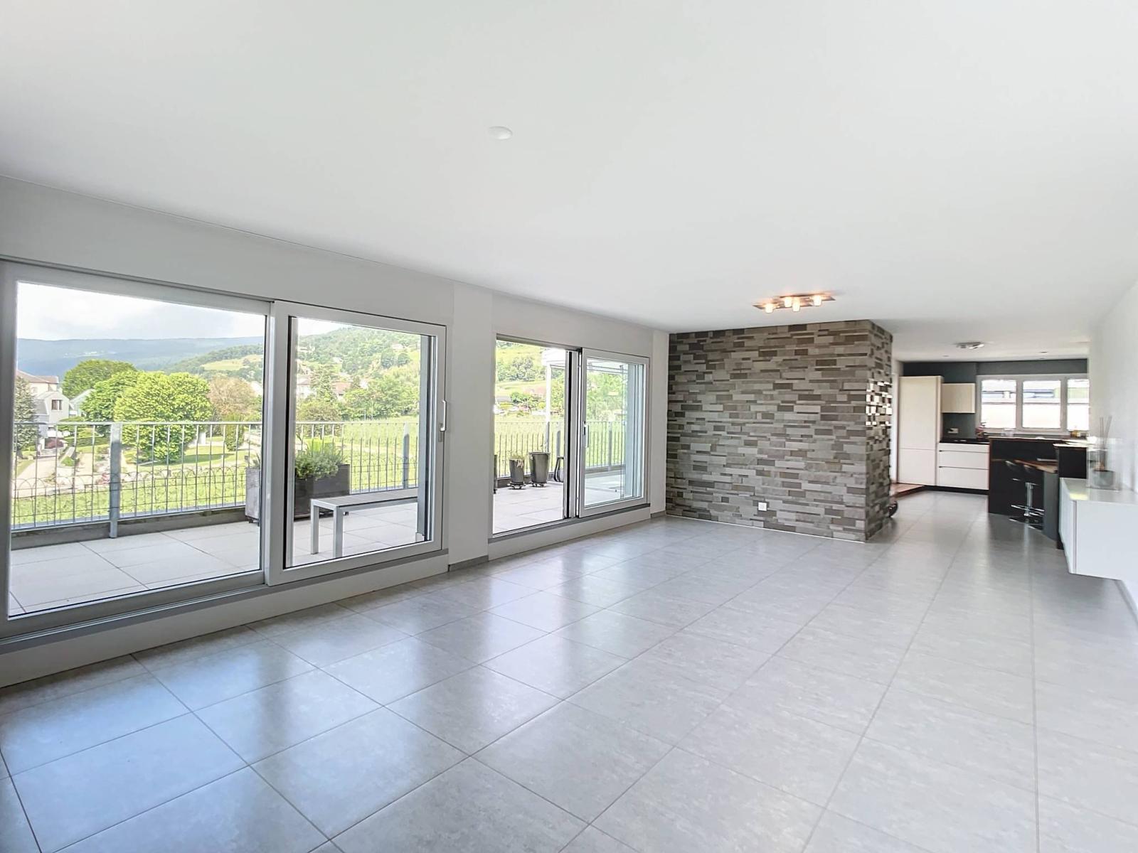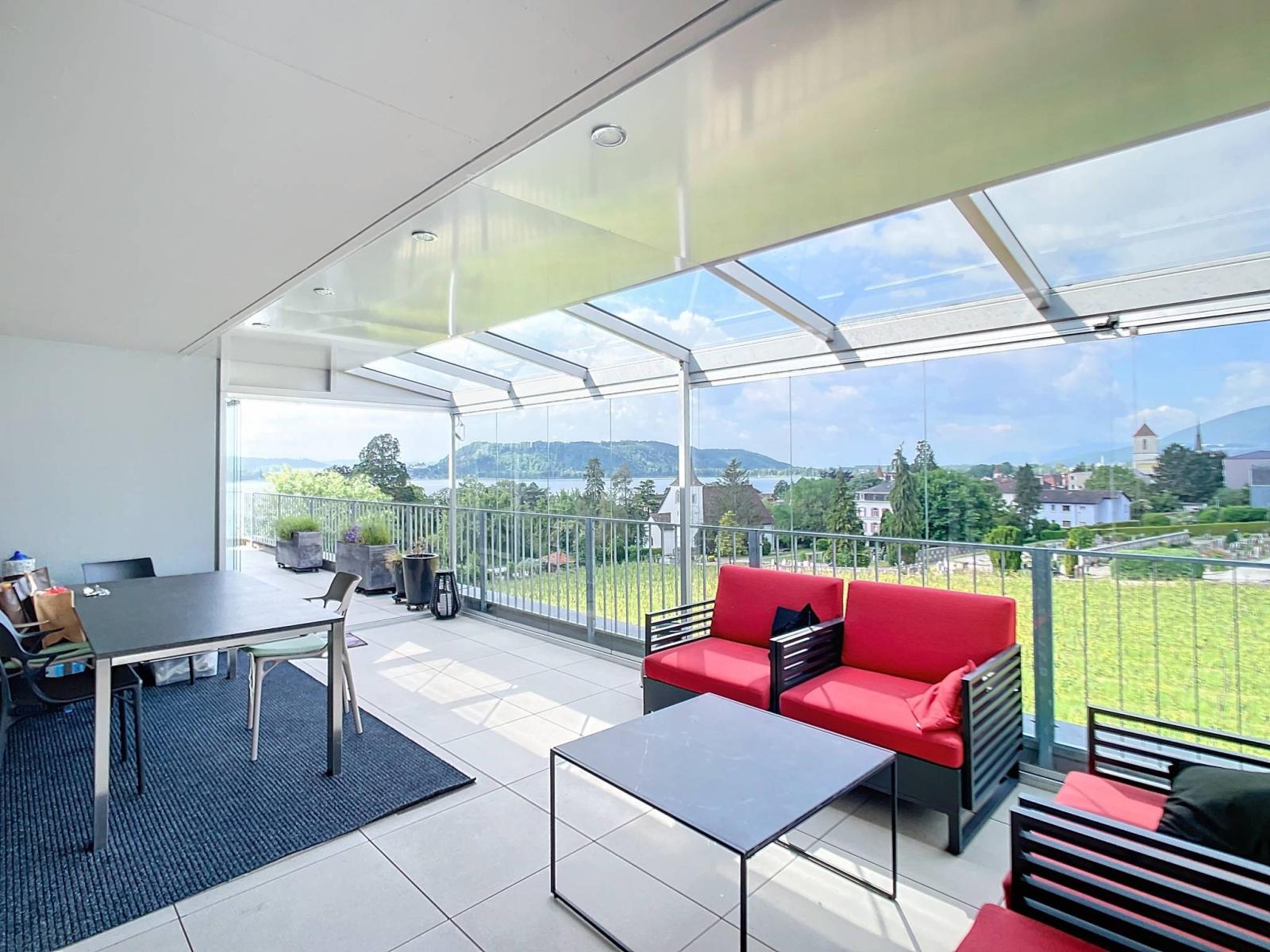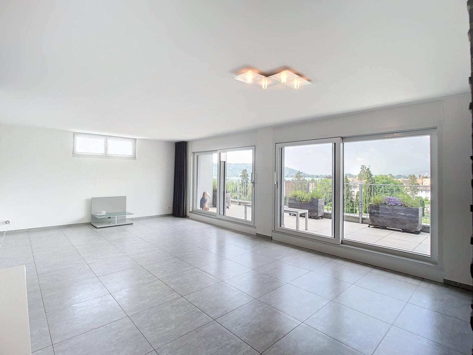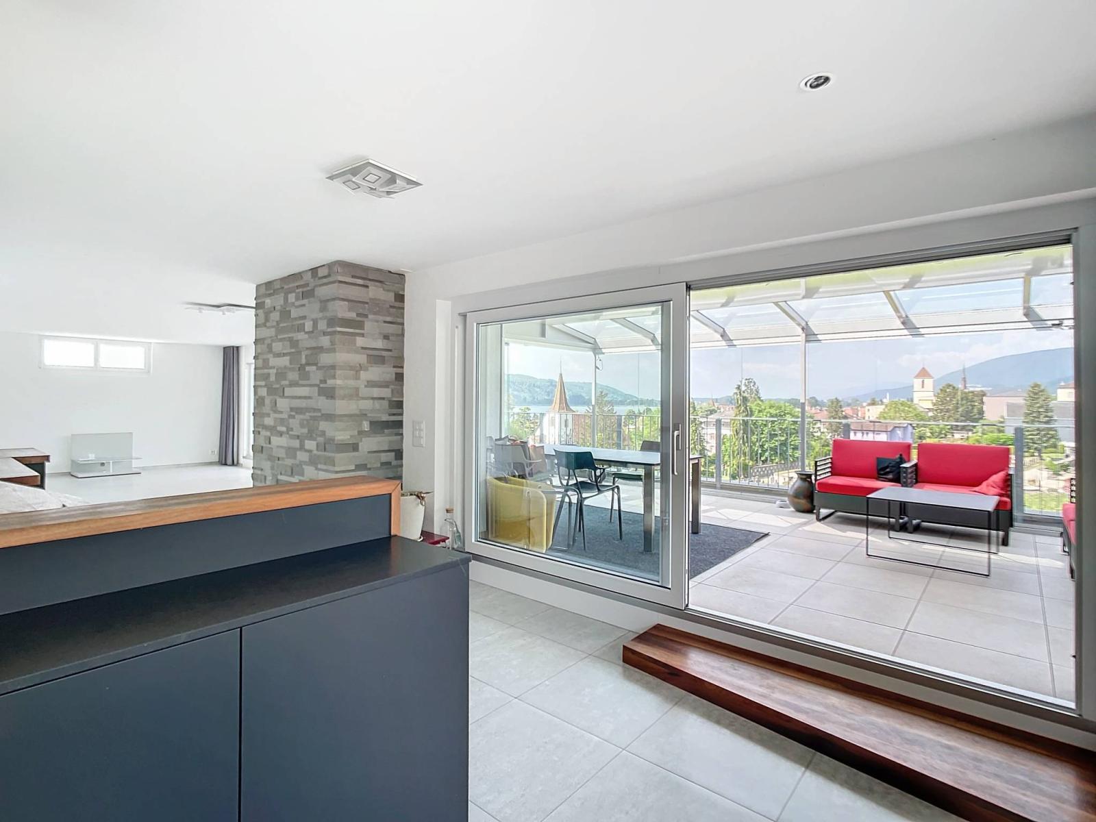 With 57 m² of private terrace offering a clear view of the lake, the Jura mountains and the city, you can enjoy maximum sunshine and experience moments of sharing outdoors with your family and friends. In addition to the veranda, this sumptuous terrace has a covered relaxation area with jacuzzi.