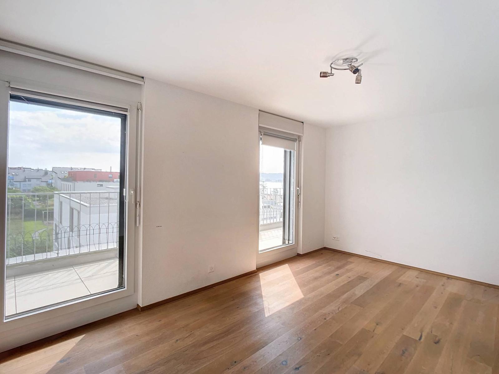 Located in a quiet residential area, close to amenities, schools and the lake, this superb 4.5 room penthouse is on the top floor of a building of 7 apartments.