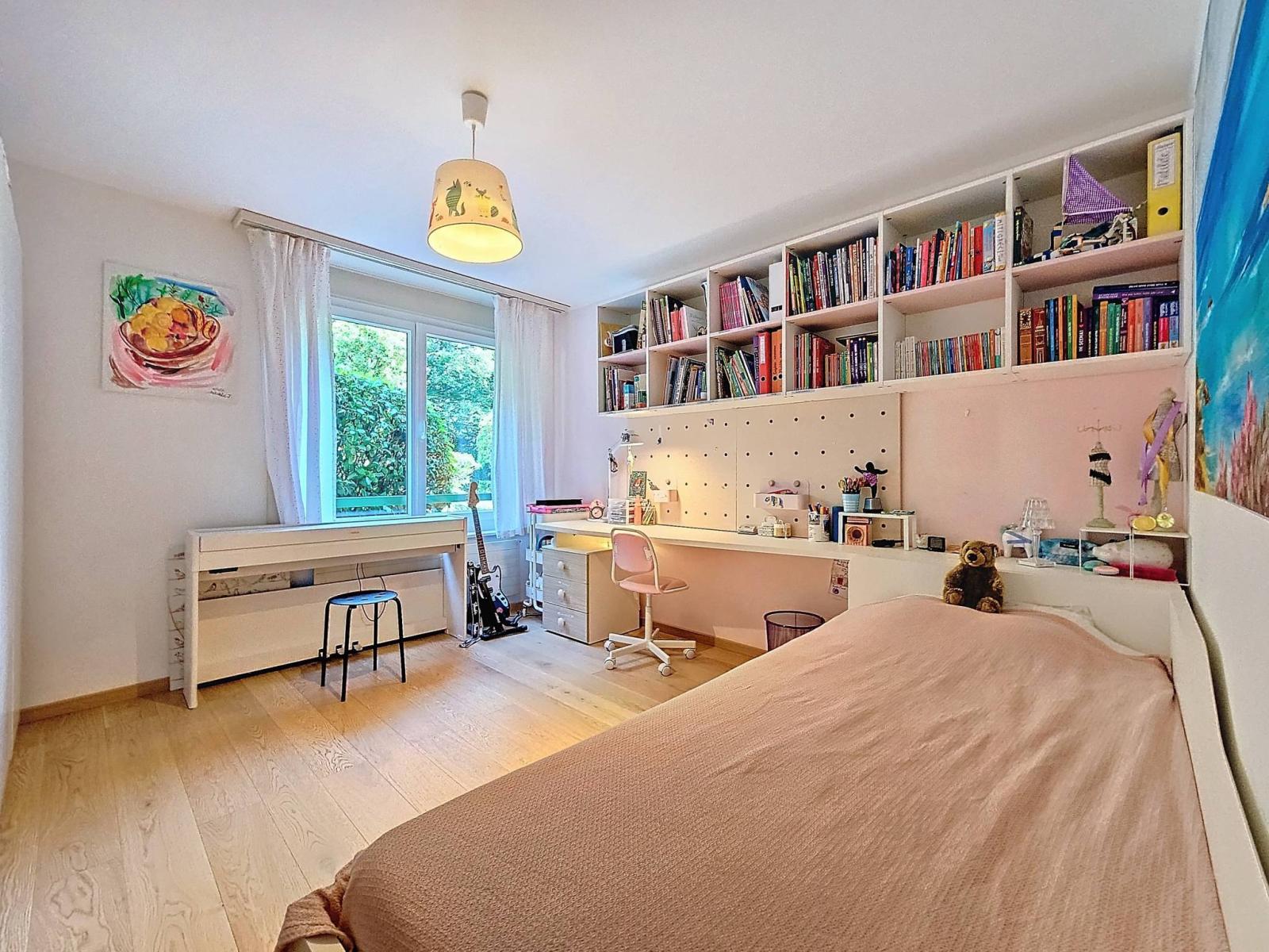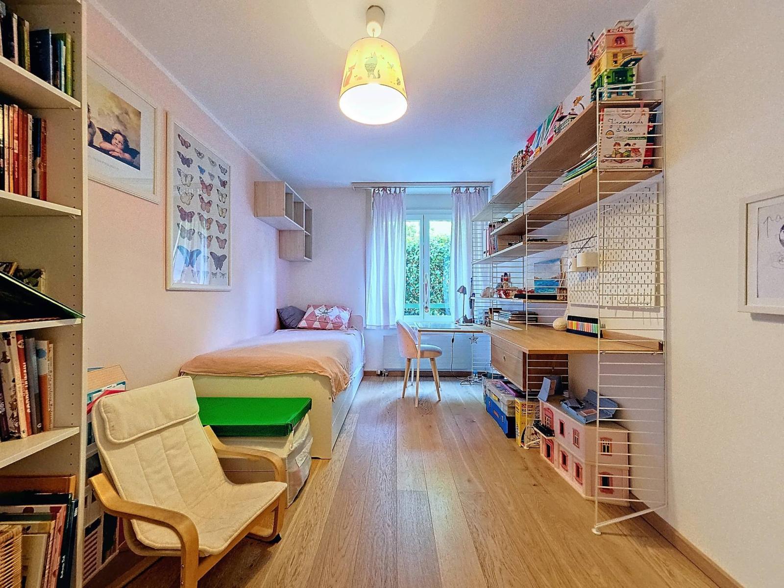 Here is a spacious 5.5 room apartment on one level, on the ground floor with private garden in a residential and bucolic environment while being a few steps from the COOP and other amenities. It is bright thanks to its West orientation and its comfort is modern due to good maintenance, but especially to several stages of renovations including major improvements in 2018 (renovation of the system and electrical box; creation of a shower room and renovations of the other bathrooms).