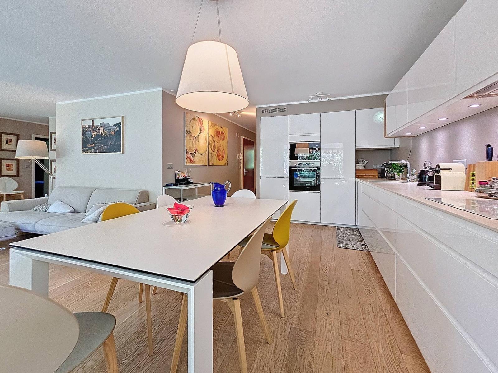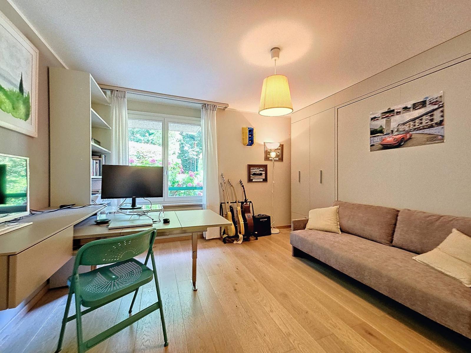 In addition, a private cellar and two indoor parking spaces at CHF 35,000 each (in addition to the sale price of the apartment). One of the spaces is equipped with an electric charging station.