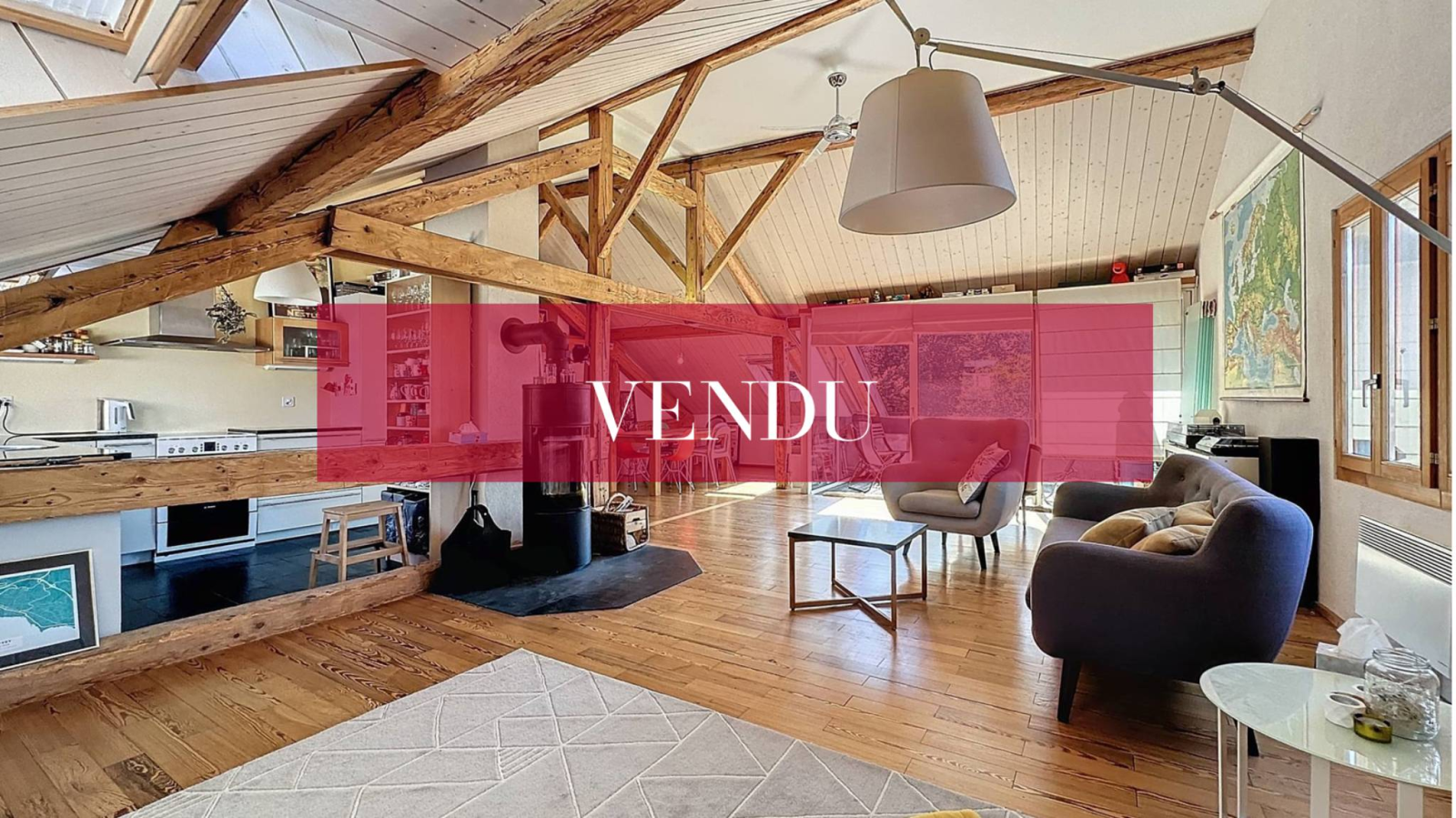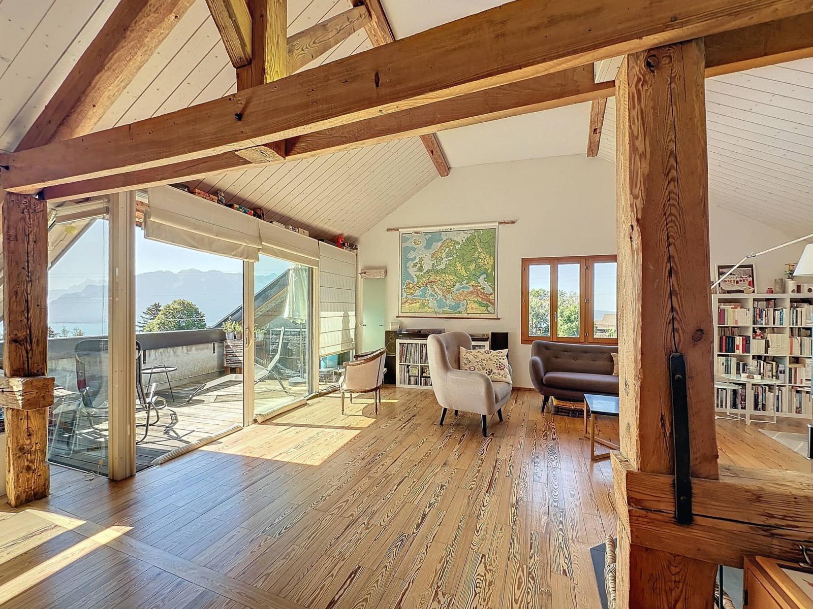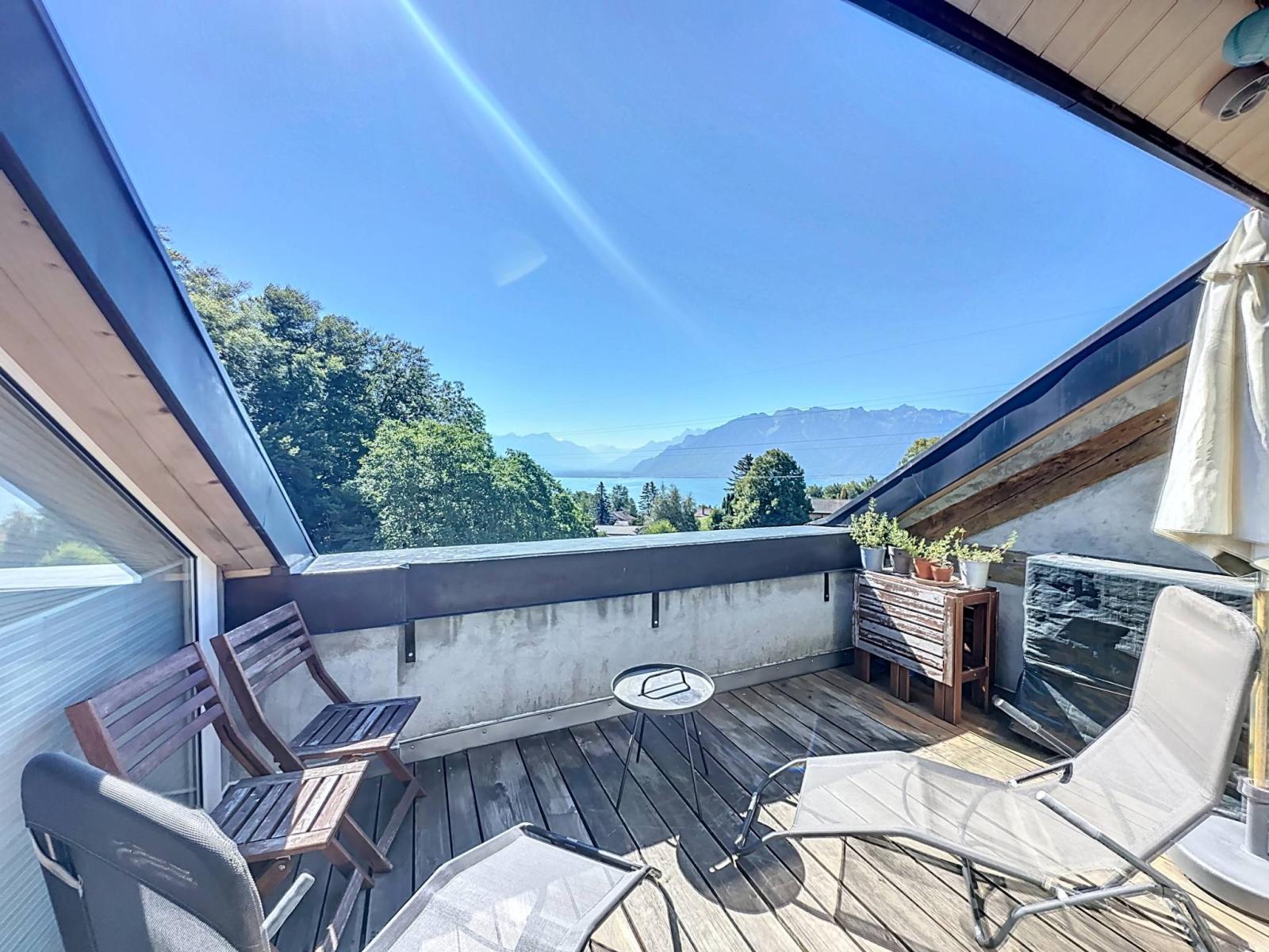 This spacious penthouse with an interior surface area of 95 m², occupies the entire top floor of a four-unit condominium. Created in 2010 with quality materials, it has a bedroom, a mezzanine, an open kitchen, and a bright living room extended by a 10m² balcony with a view facing the lake.