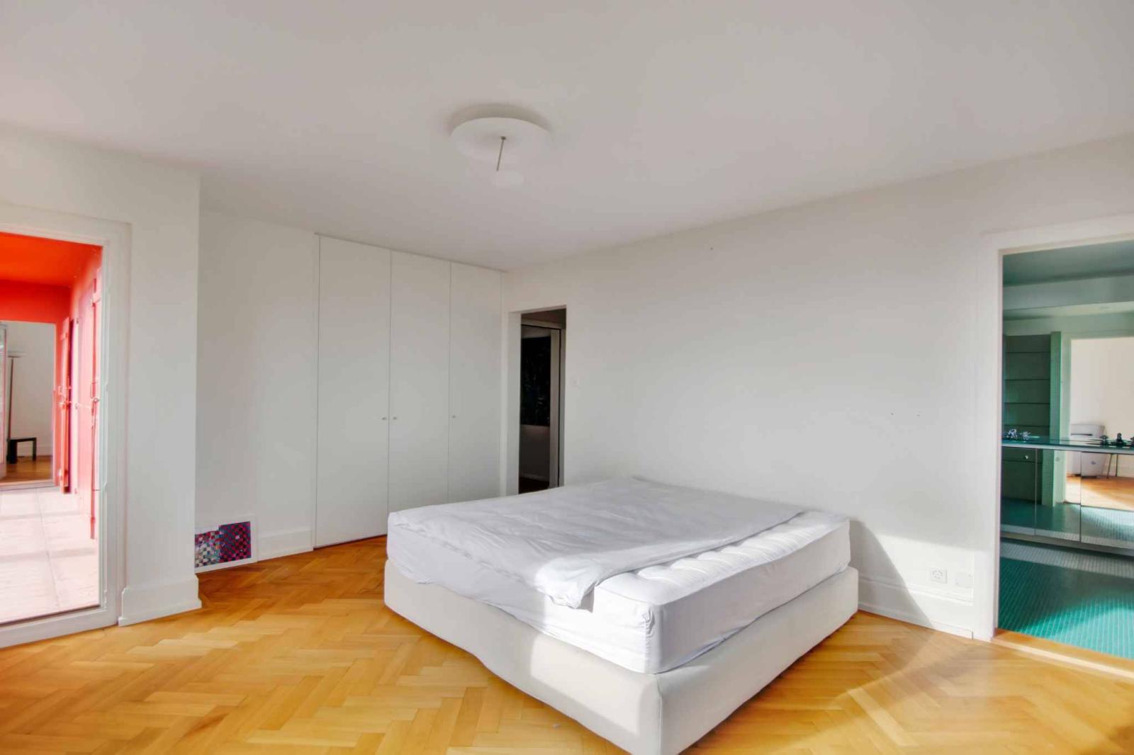 The second floor offers a spacious bedroom, equipped with a dressing room and a shower room with WC.