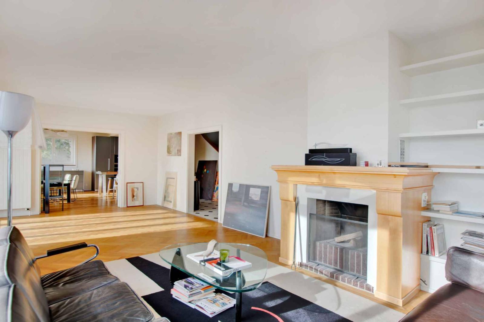 The ground floor opens onto a bright living room with fireplace and access to the outside, as well as a recently renovated kitchen, equipped with high-end equipment and opening onto a spacious dining room. This space invites you to relax and share with family or friends. A bedroom with adjoining bathroom and separate toilets complete this level. The main terrace, facing south and equipped with a protective canvas, extends this living space to the outside.