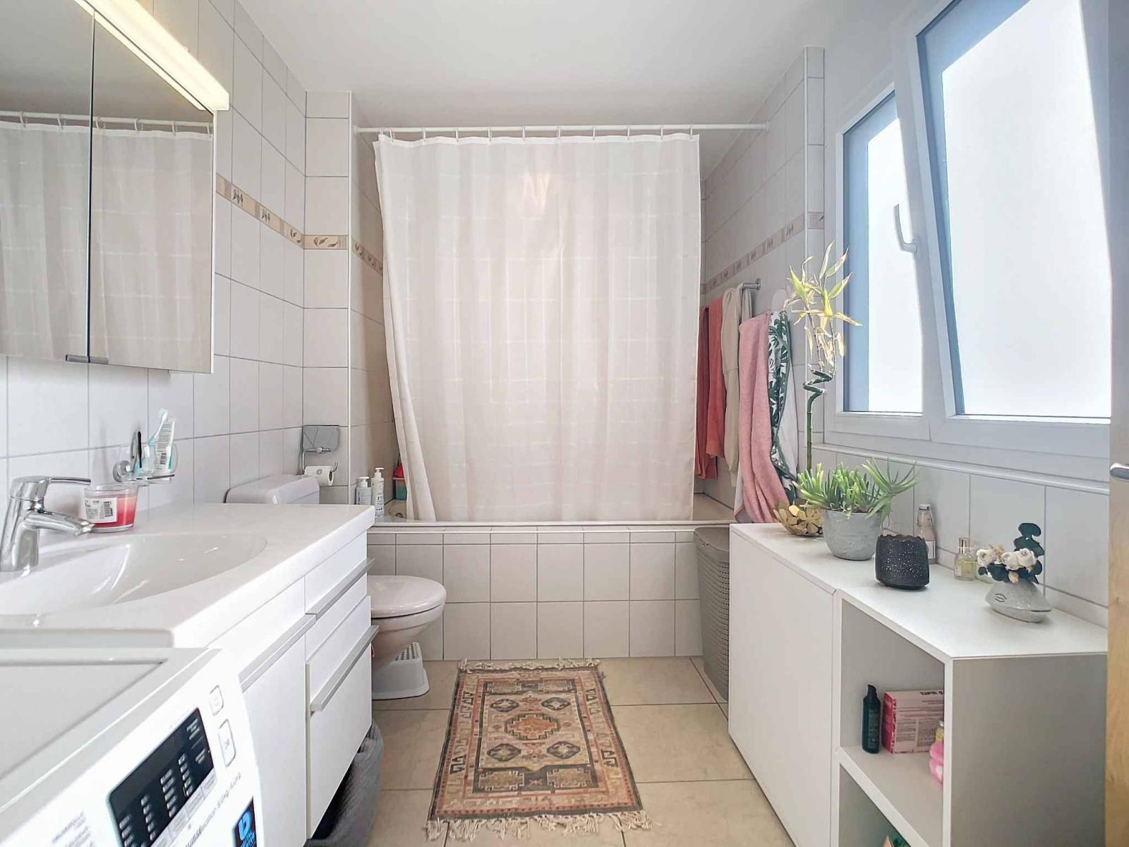 The apartment, very bright, consists of a distribution hall serving the night space composed of 2 bedrooms and 2 shower rooms, a shower room and a bathroom.