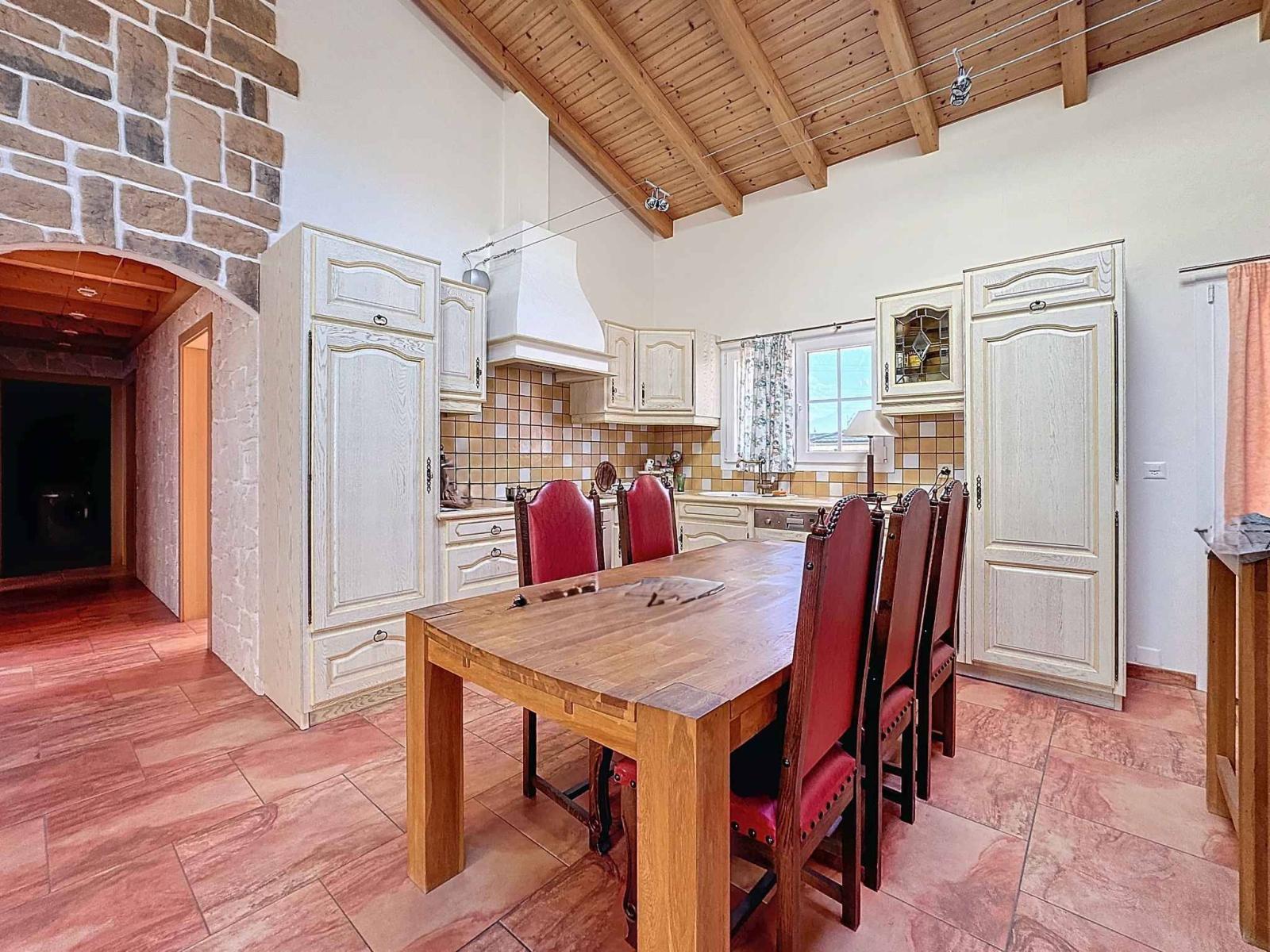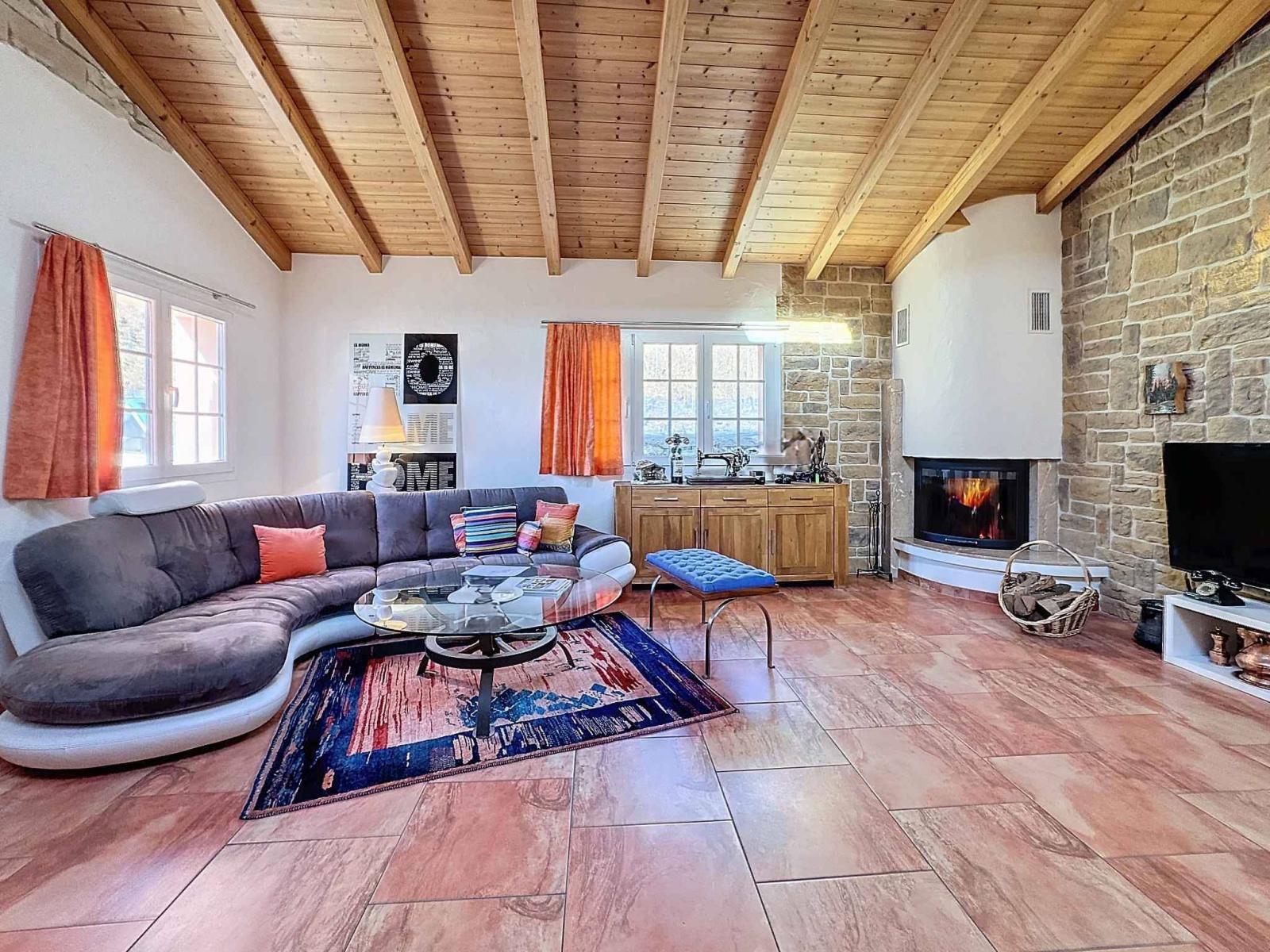 Great features: ceiling height of 4.50 meters, underfloor heating and cooling by air/water heat pump, corner fireplace, exposed framework in all rooms.