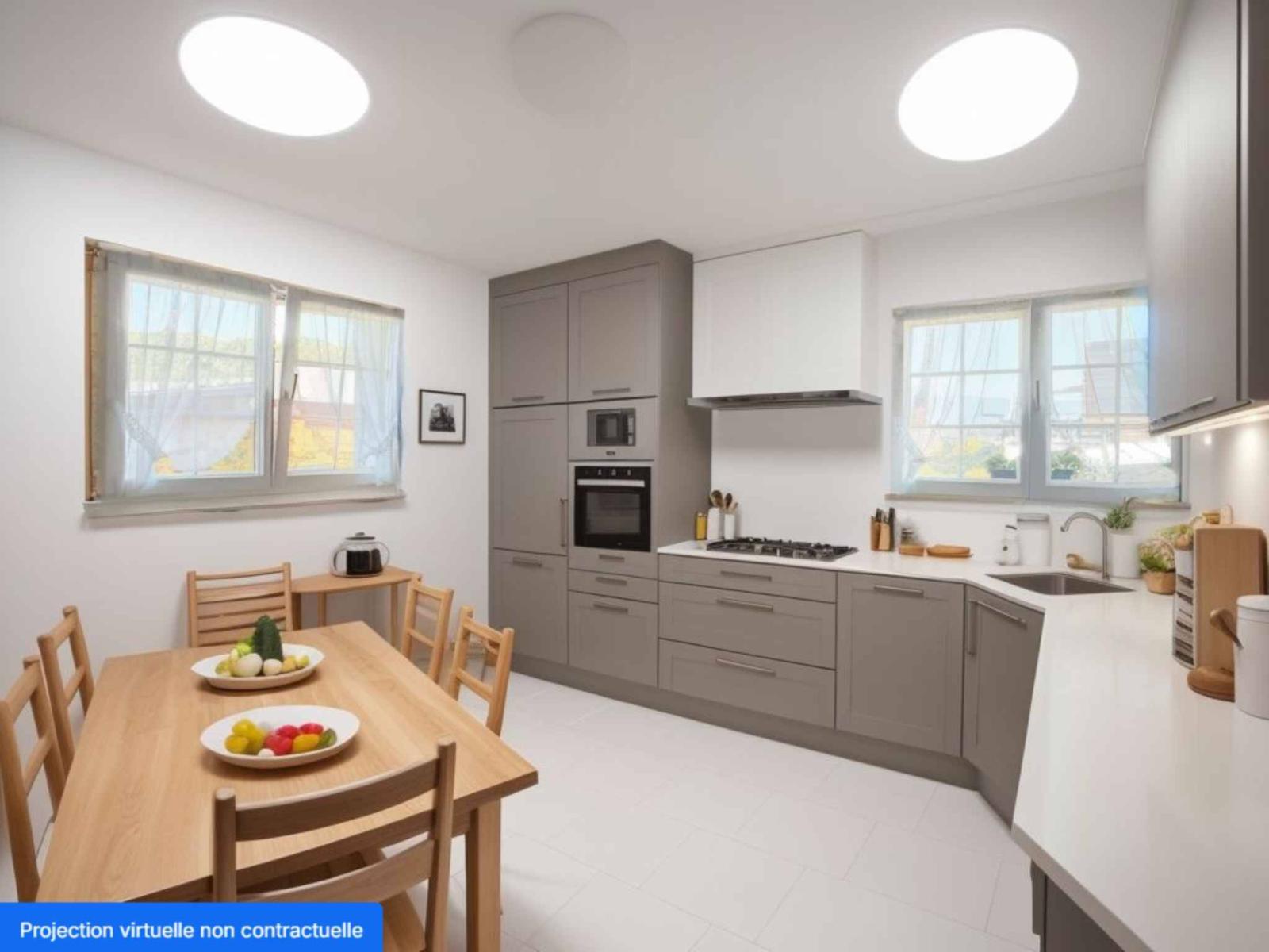 A hallway, a garage for 2 cars and a cellar occupy the basement. The laundry room, as well as the technical room are accessible from both houses.