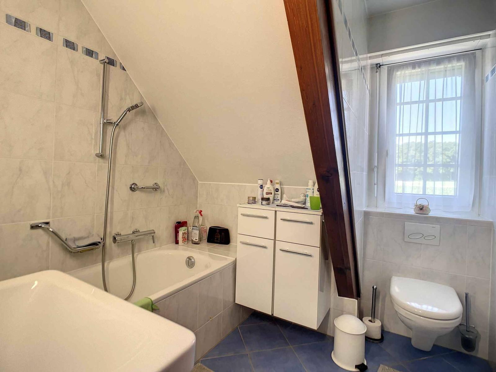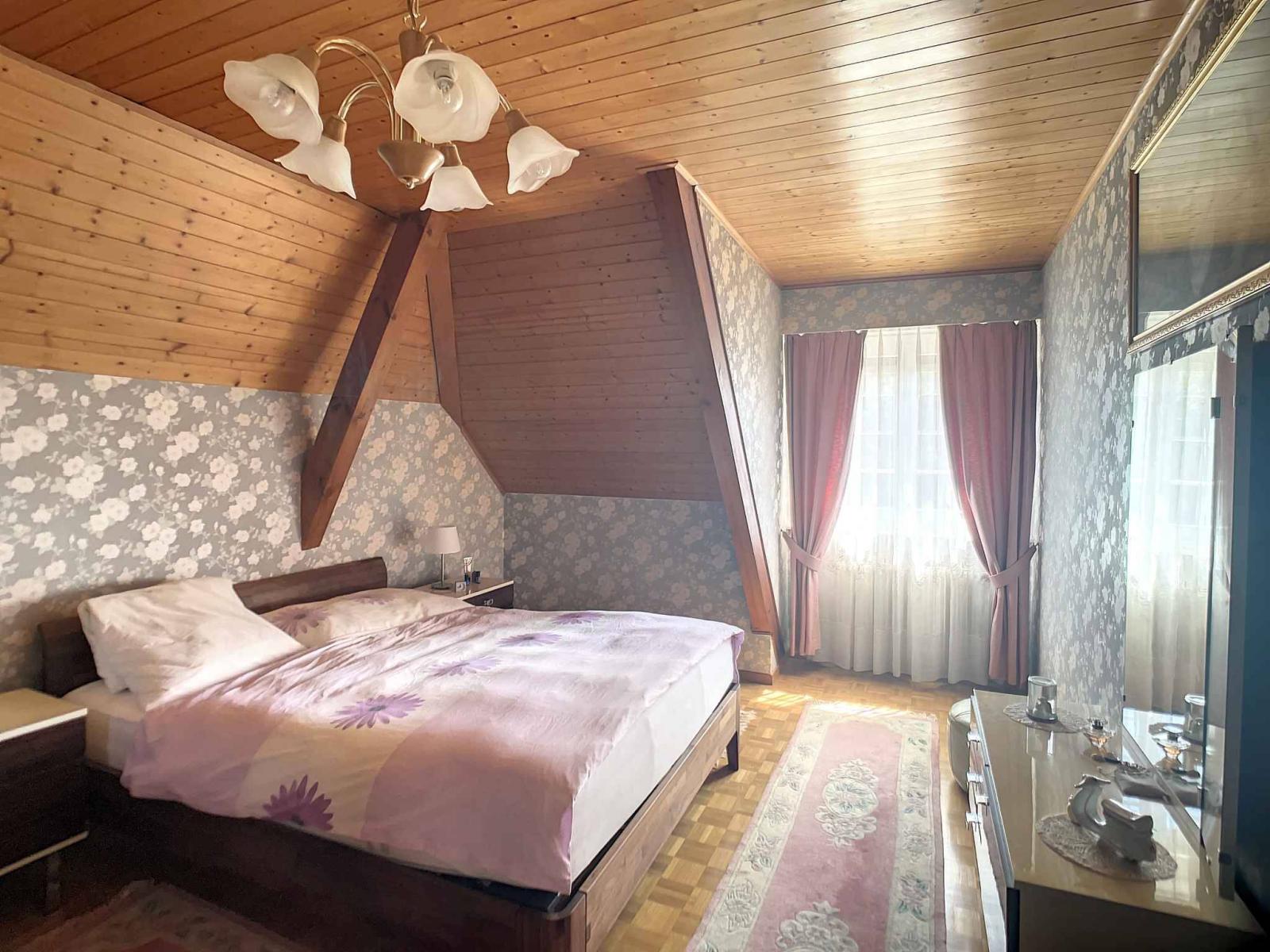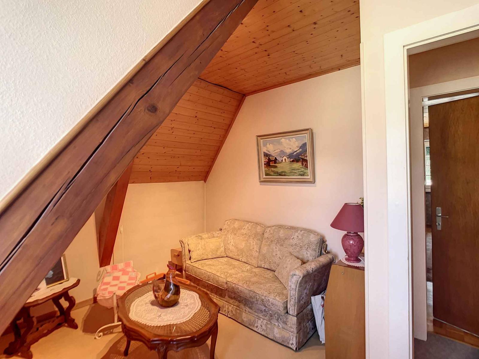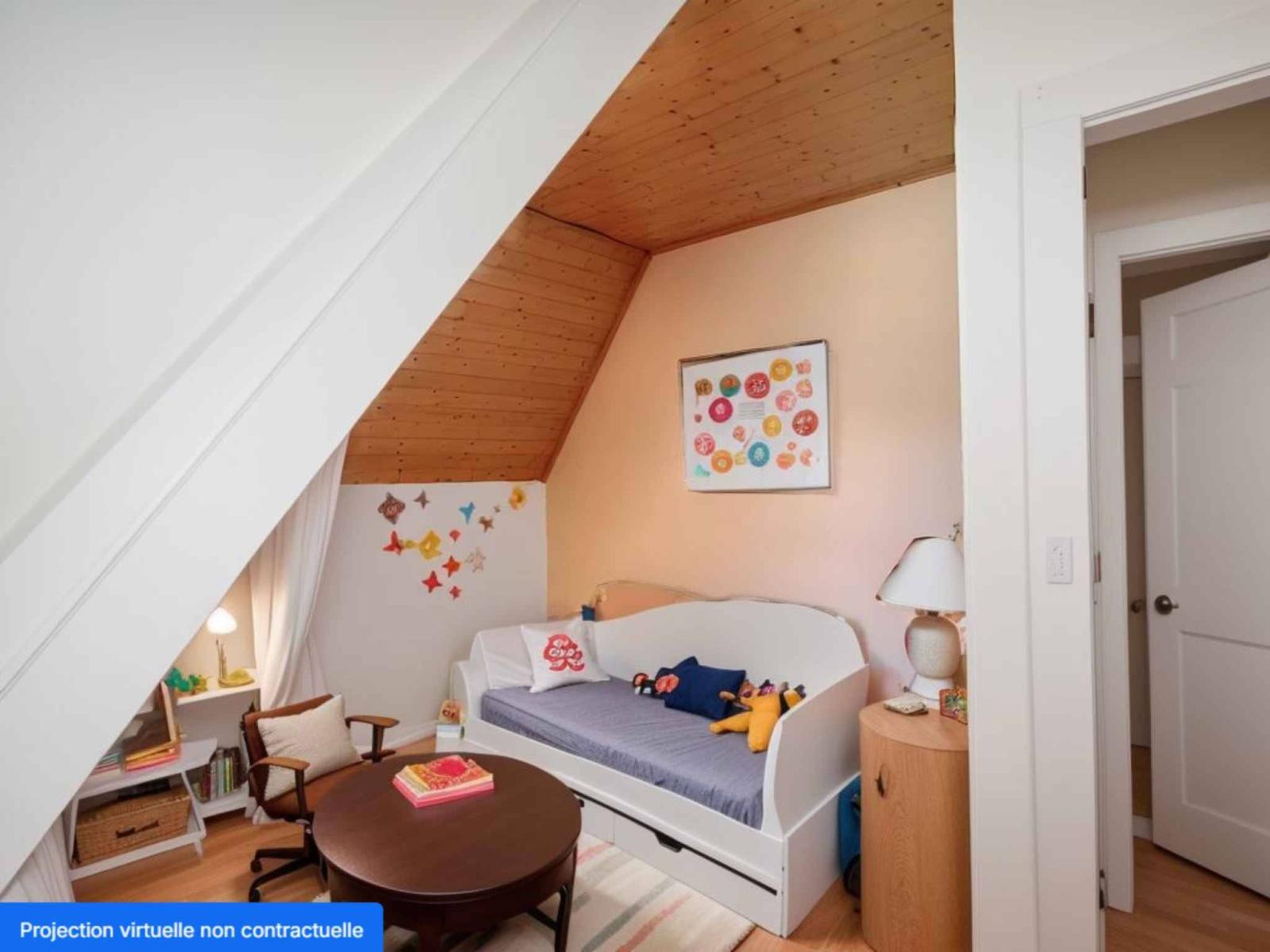The sleeping area is upstairs and offers 3 bedrooms and a bathroom. An attic, soon accessible by a trapdoor, is available in the attic.