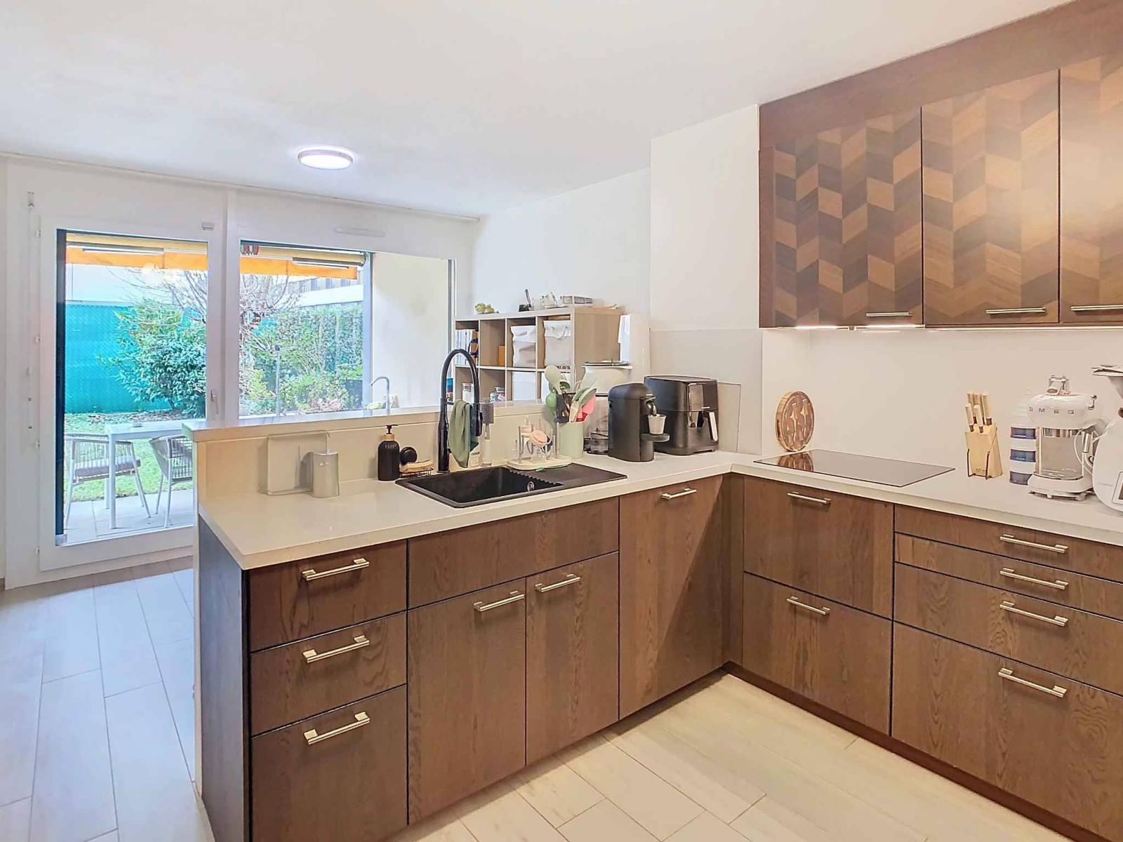 This beautiful 5-room ground-floor apartment is ideally located in the Grand-Lancy district, in a well-kept condominium and close to all amenities.