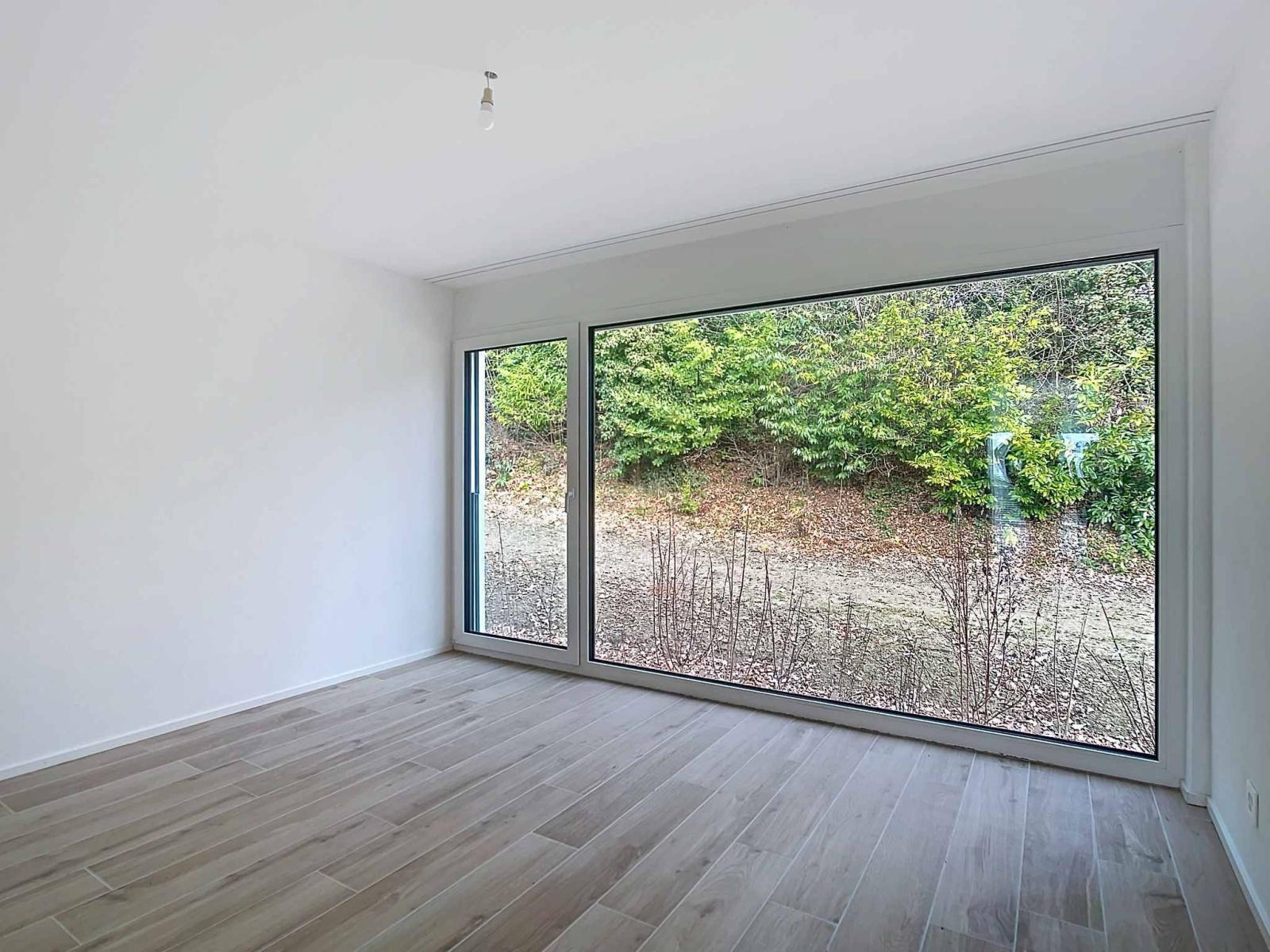 Designed to MINERGIE standards, it meets the most demanding criteria in terms of quality, safety, and comfort. The living spaces, bathed in natural light thanks to optimal southern exposure, are configured to maximize space and offer a pleasant and functional atmosphere on a daily basis. The apartment has an interior surface area of 97.3 m², a southwest-facing balcony of 46.5 m², as well as a 77 m² vegetable garden.