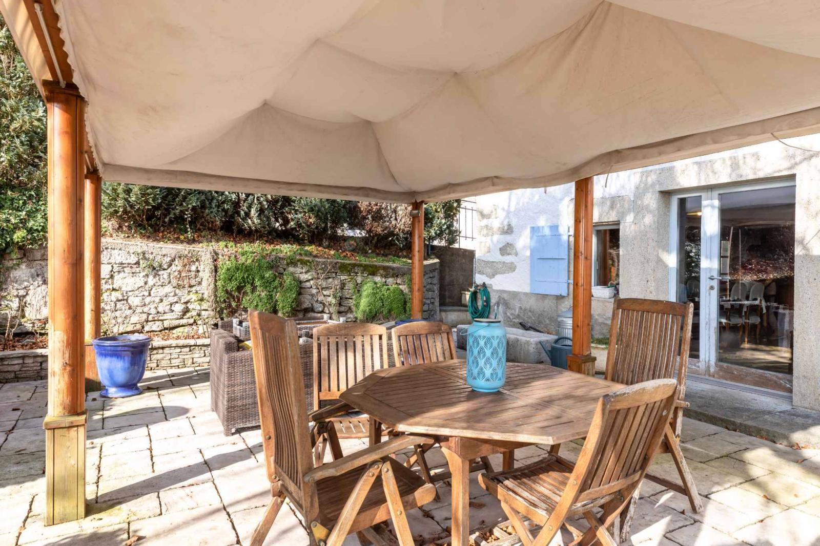 The carefully maintained garden, a true haven of peace, has a shed, a chicken coop, a covered terrace and a fountain fed by a natural spring. Several parking spaces complete this unique ensemble.