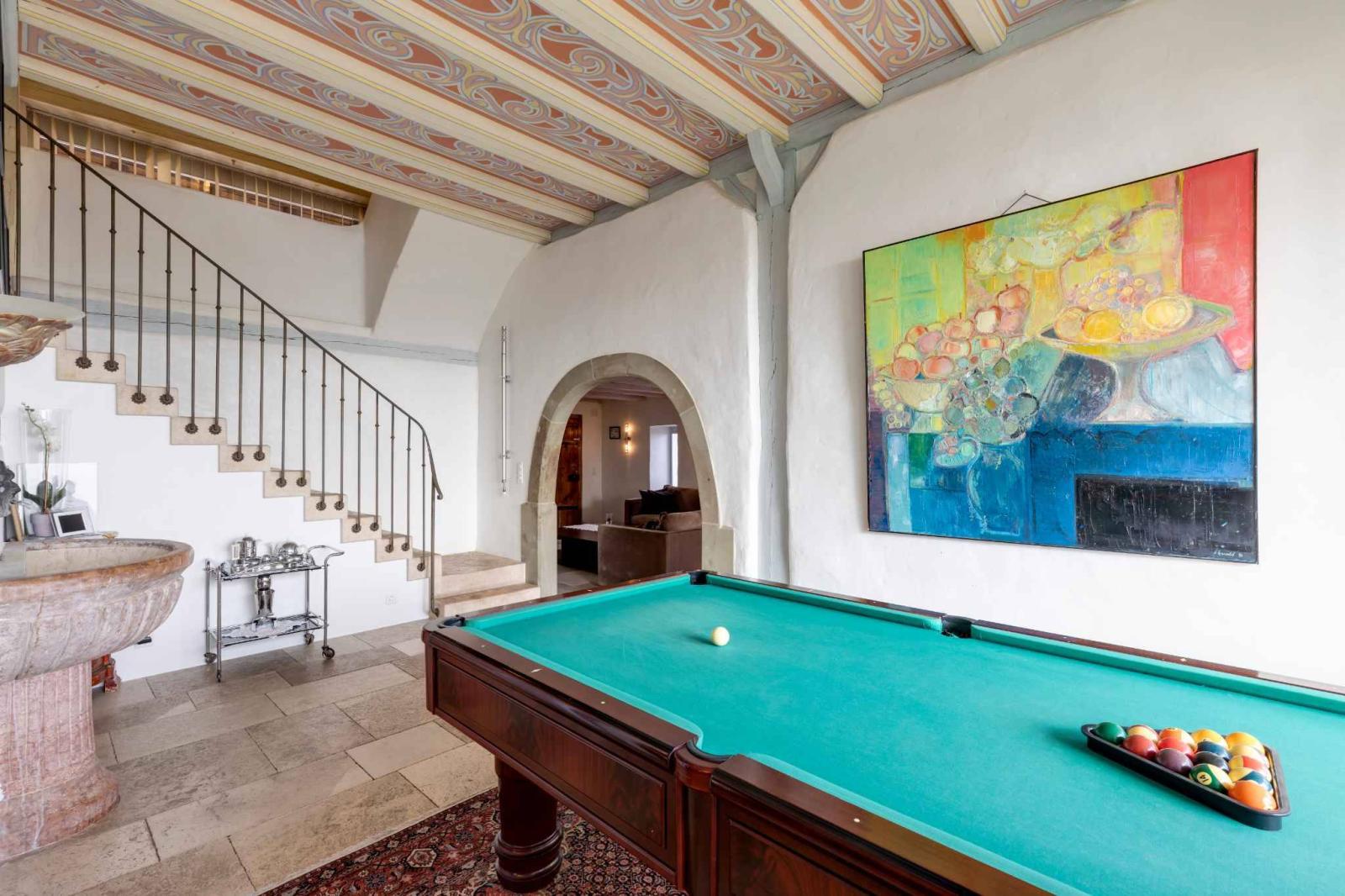 The basement, meanwhile, has a superb carnotzet set up in a vaulted cellar, a technical room and a PC shelter offering additional storage space.