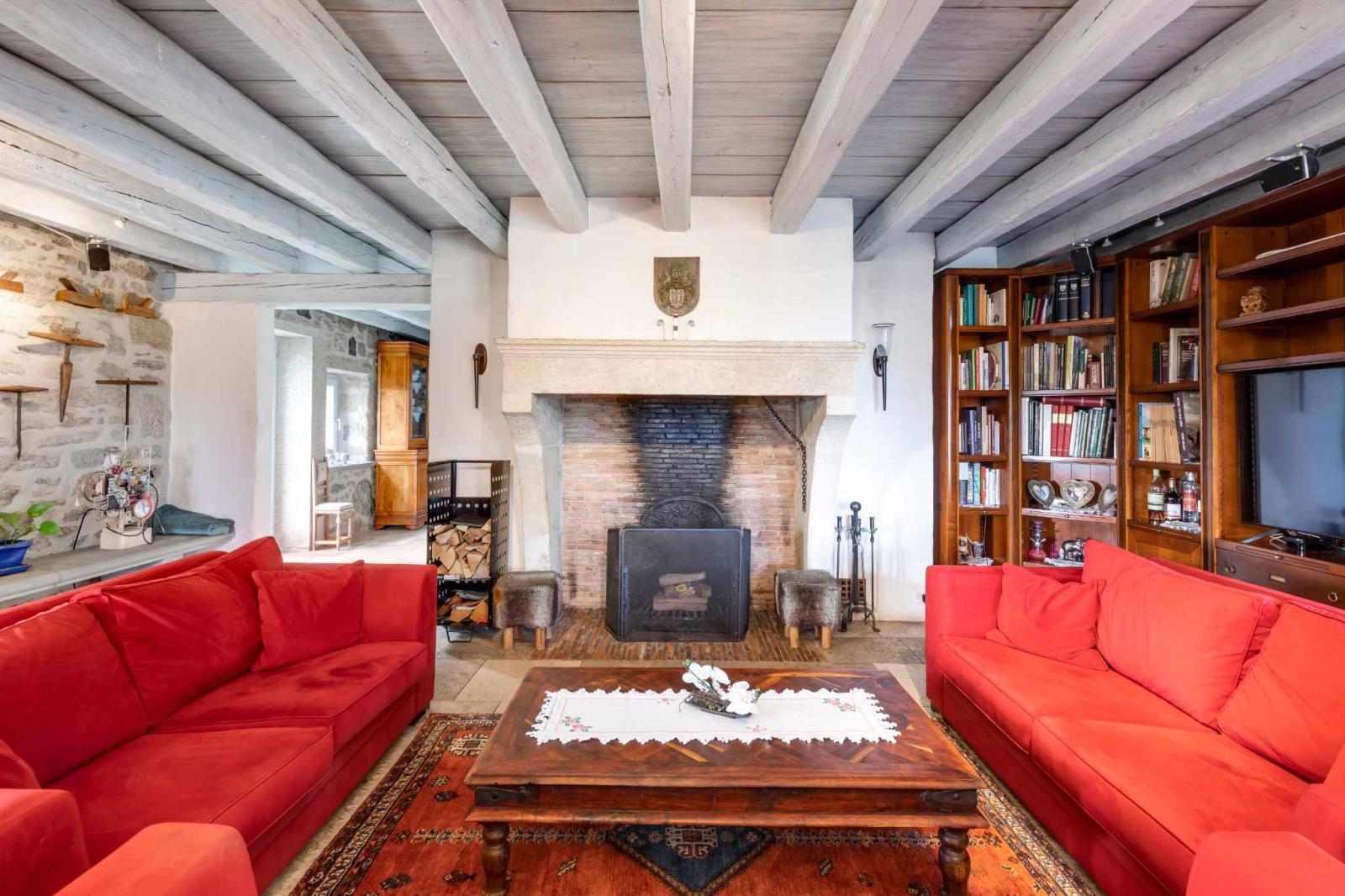 Access to the house is via several entrances, immediately revealing carefully designed living spaces. From the hall, you will discover a first living room, followed by a library and games area, as well as a large dining room opening onto a vast living room with a majestic fireplace.