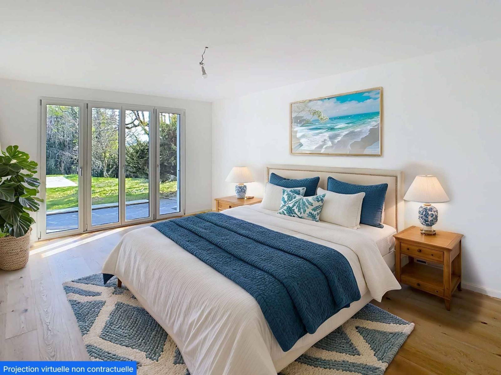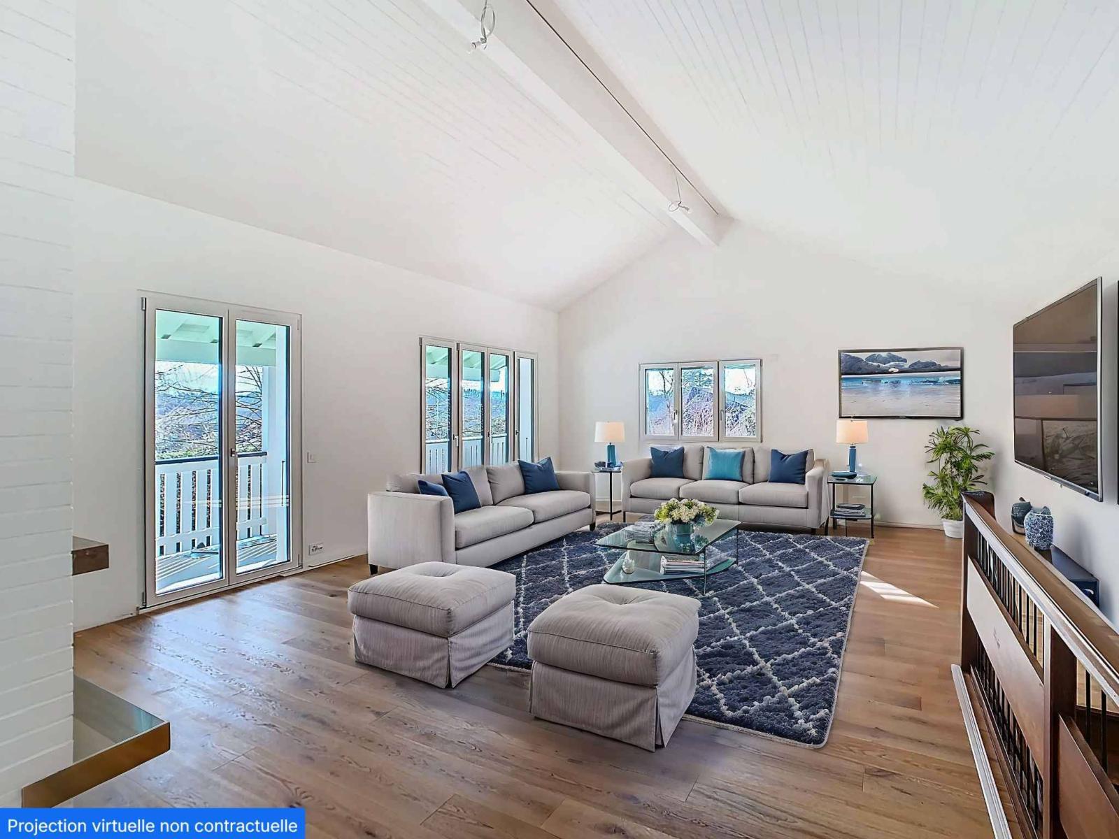 The upper ground floor features a fully fitted and equipped kitchen opening onto the dining room, a spacious living room with high ceilings and a working fireplace. A master bedroom with an en-suite shower room and a guest WC complete this level. All rooms have access to a balcony and a large terrace offering unobstructed views and access to the garden.